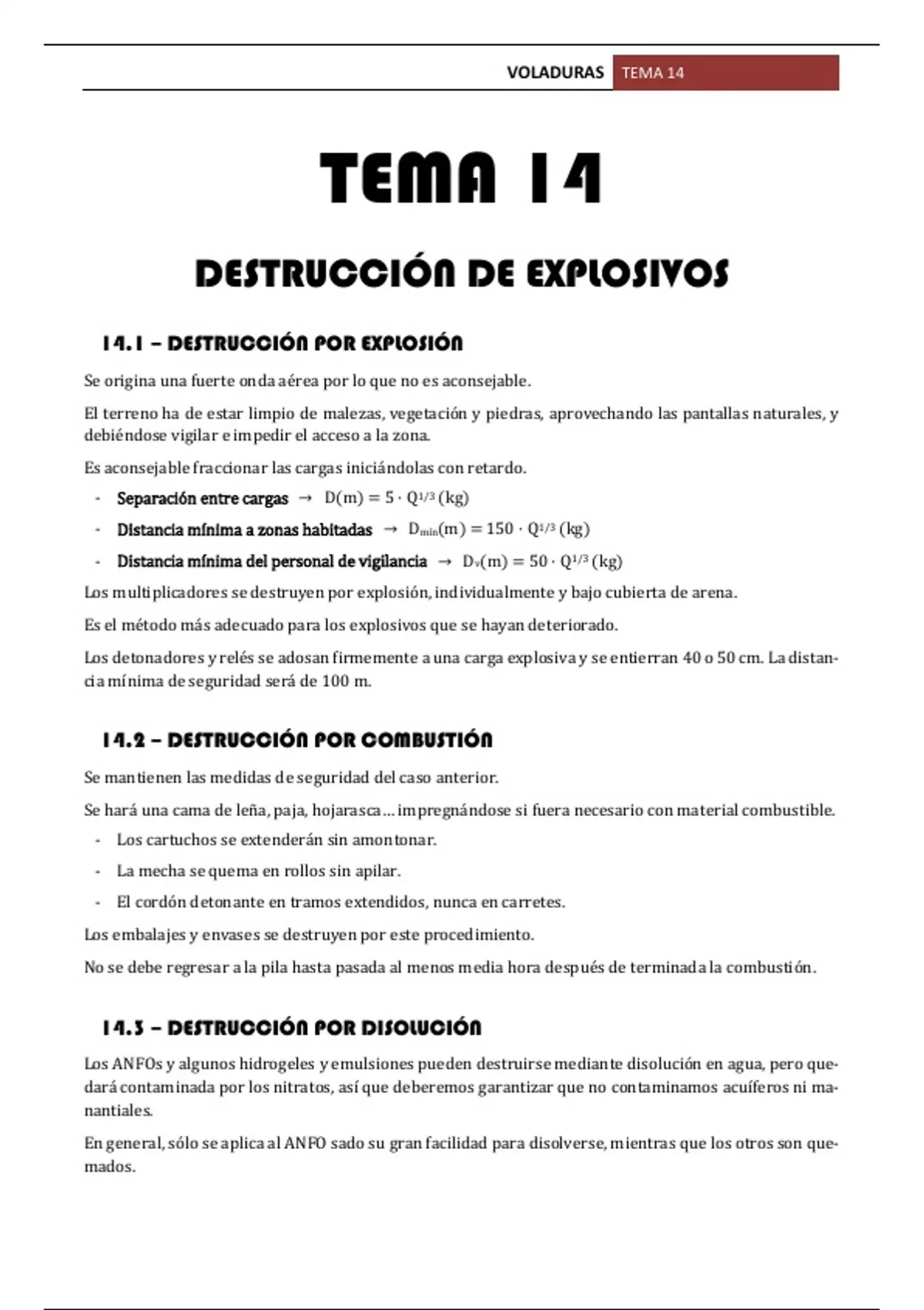Sumario Tema 14 - Destrucción de explosivos