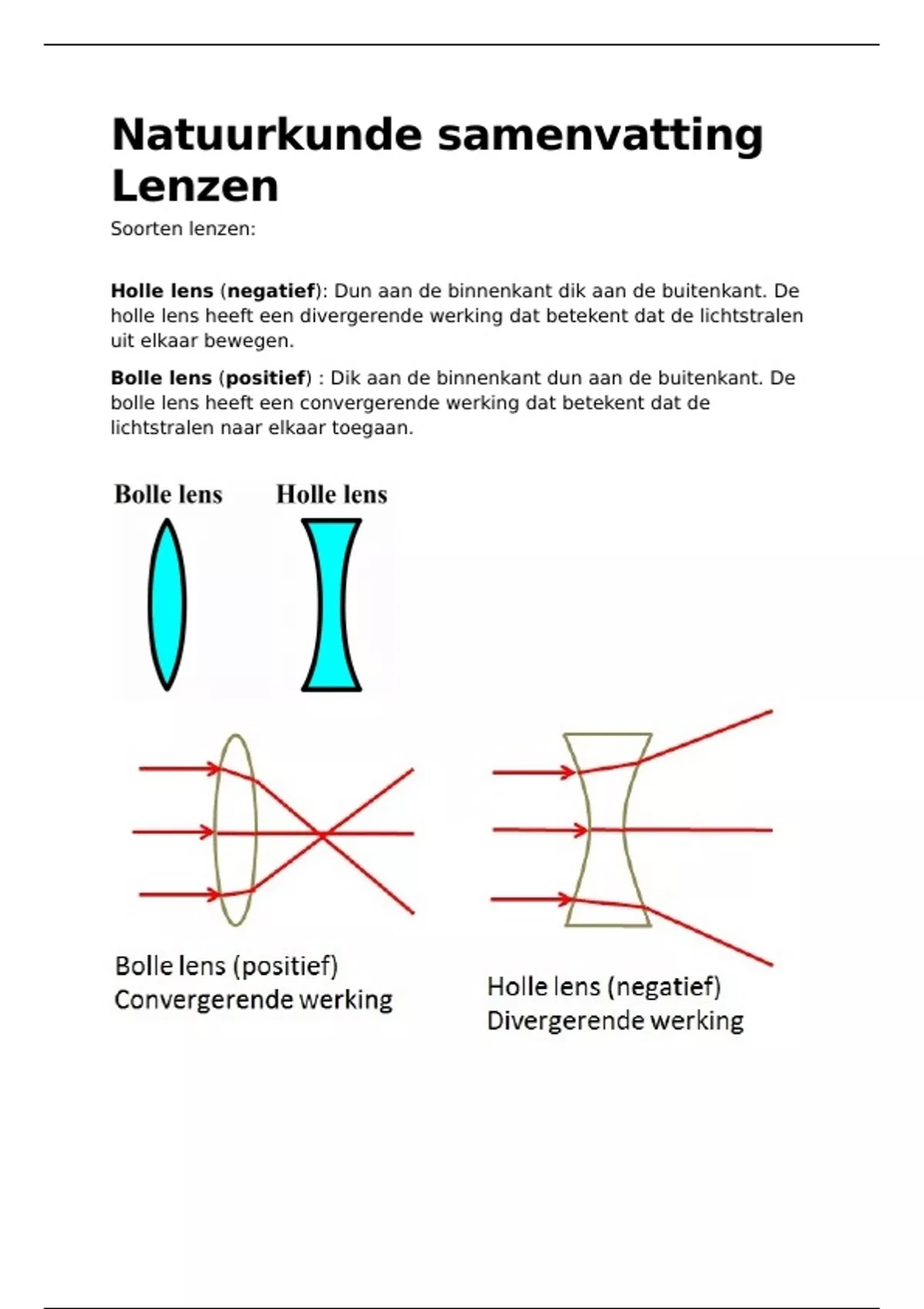 Bolle lens (positief) : Dik aan de binnenkant dun aan de buitenkant. De
