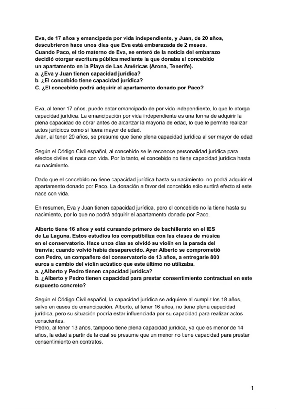 En resumen, Eva y Juan tienen capacidad jurídica, pero el concebido no la tiene hasta su