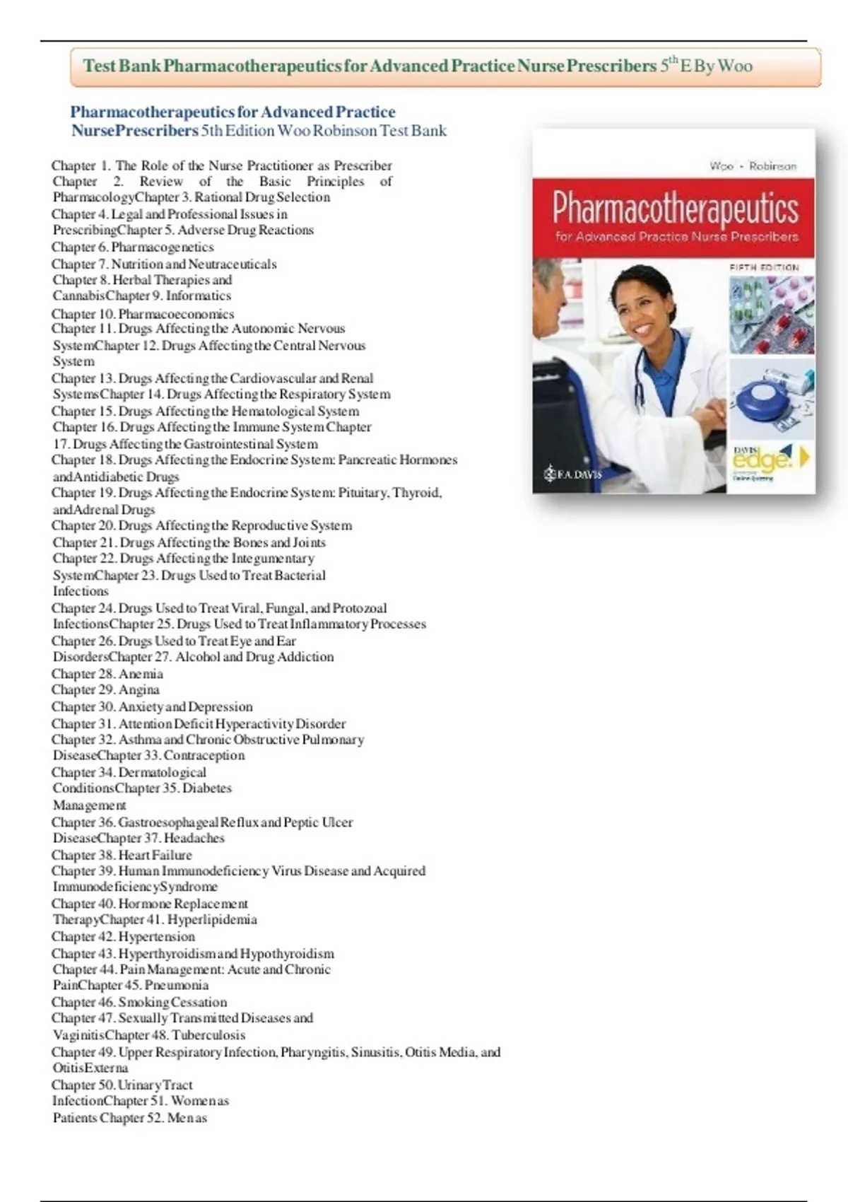 NursePrescribers 5th Edition Woo Robinson Test Bank
