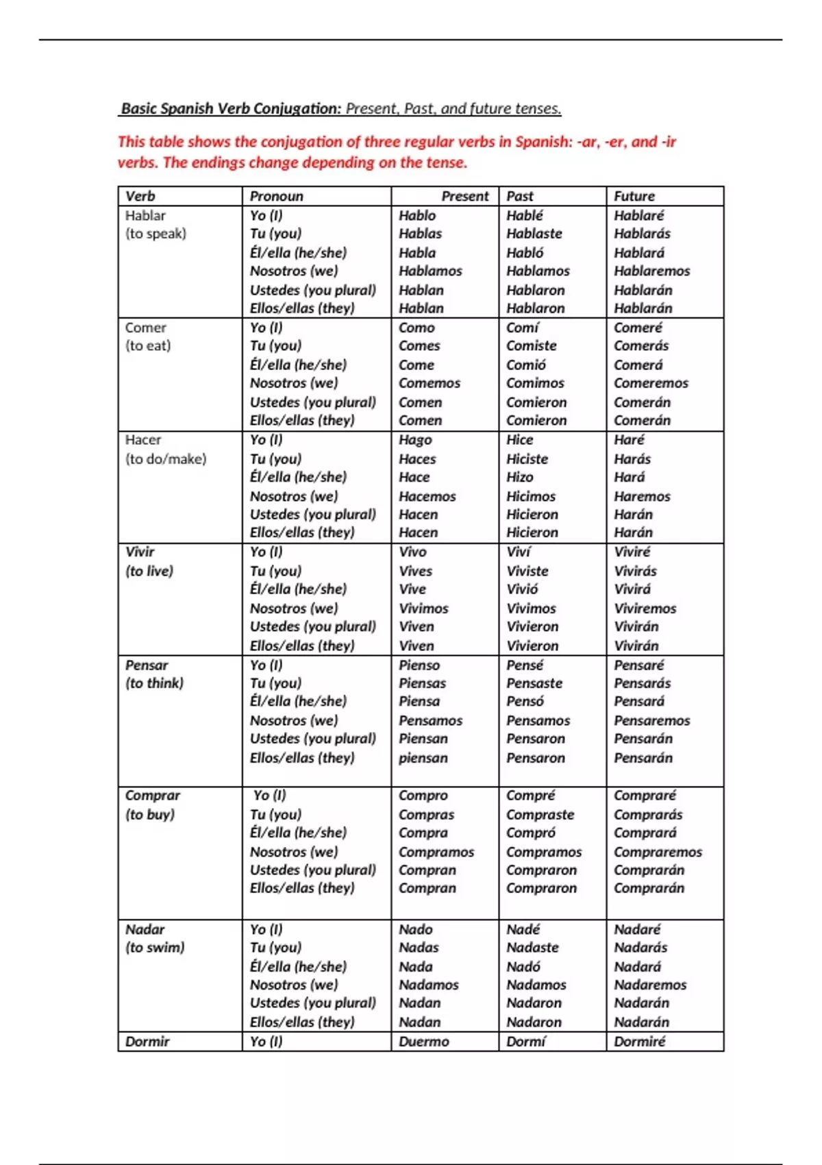 Basic Spanish Verb Conjugation: Present, Past, and future tenses.
