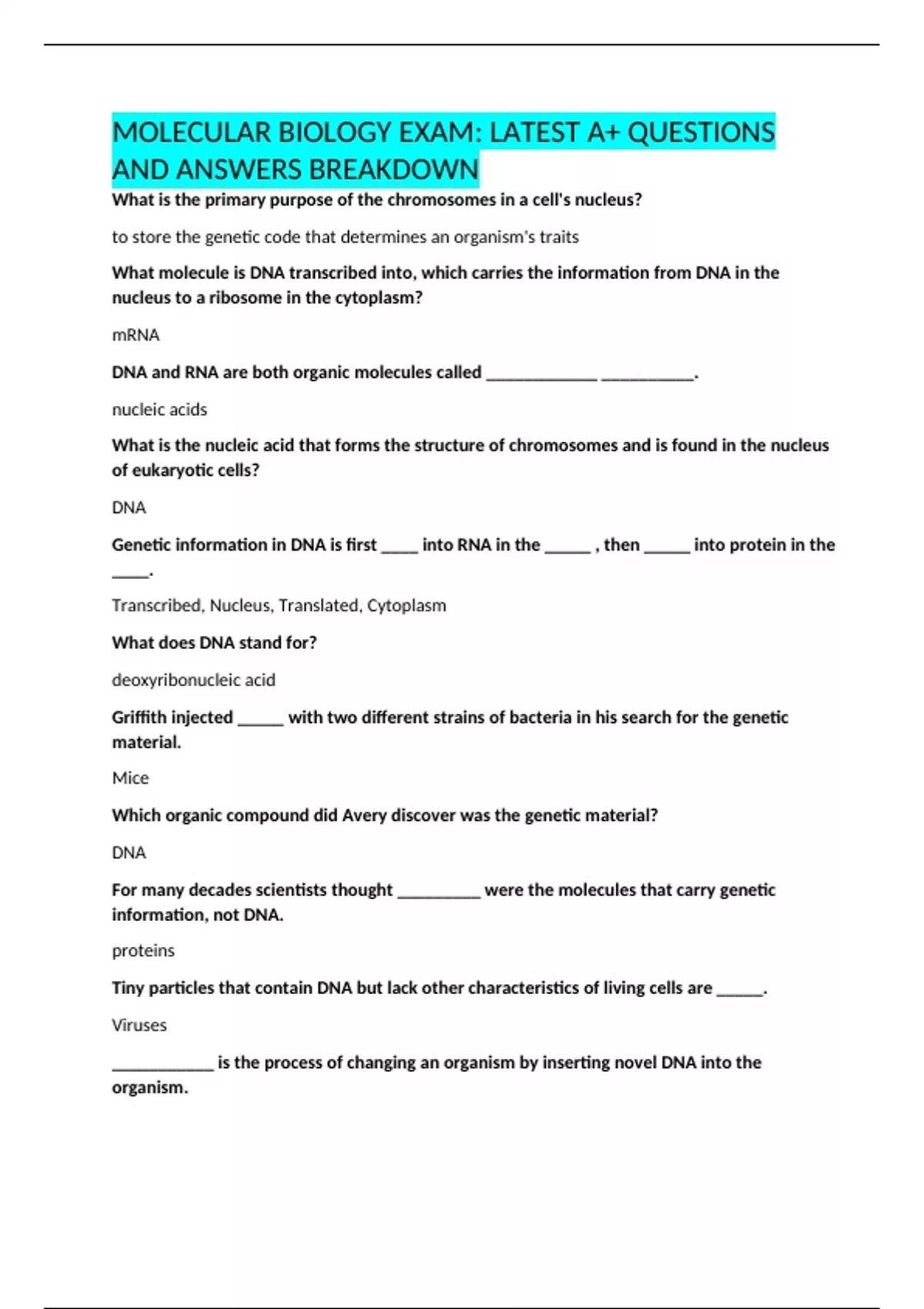 What is the nucleic acid that forms the structure of chromosomes and is found in the nucleus
