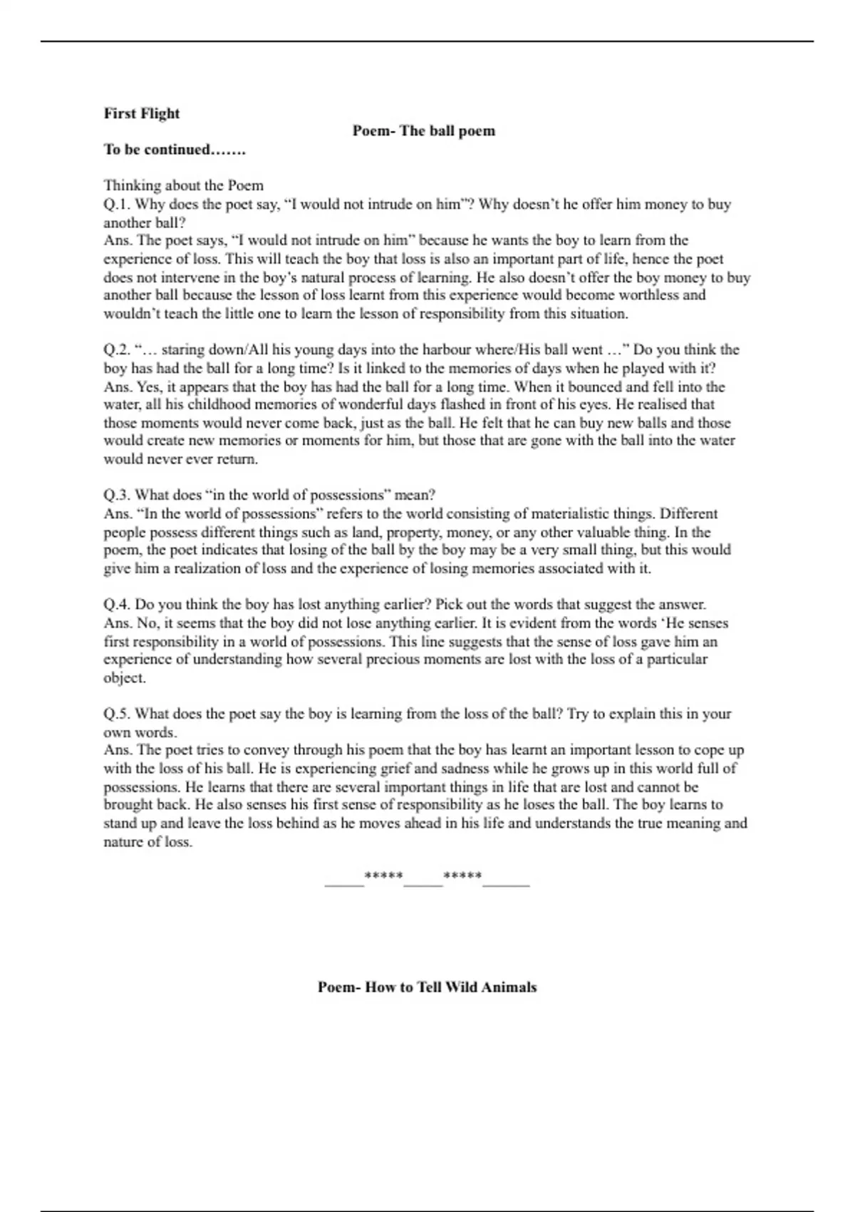 Q.5. What does the poet say the boy is learning from the loss of the ball? Try to explain this in your