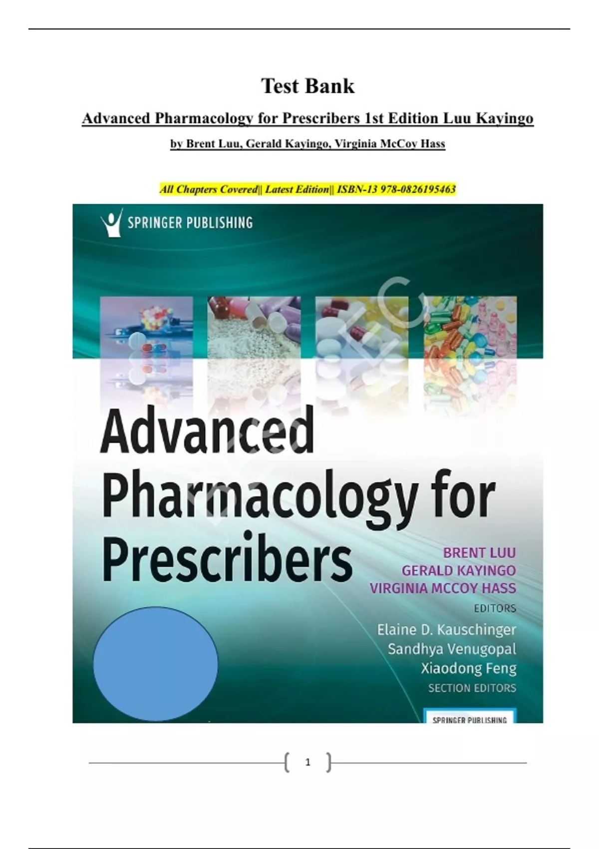 Advanced Pharmacology for Prescribers 1st Edition Luu Kayingo