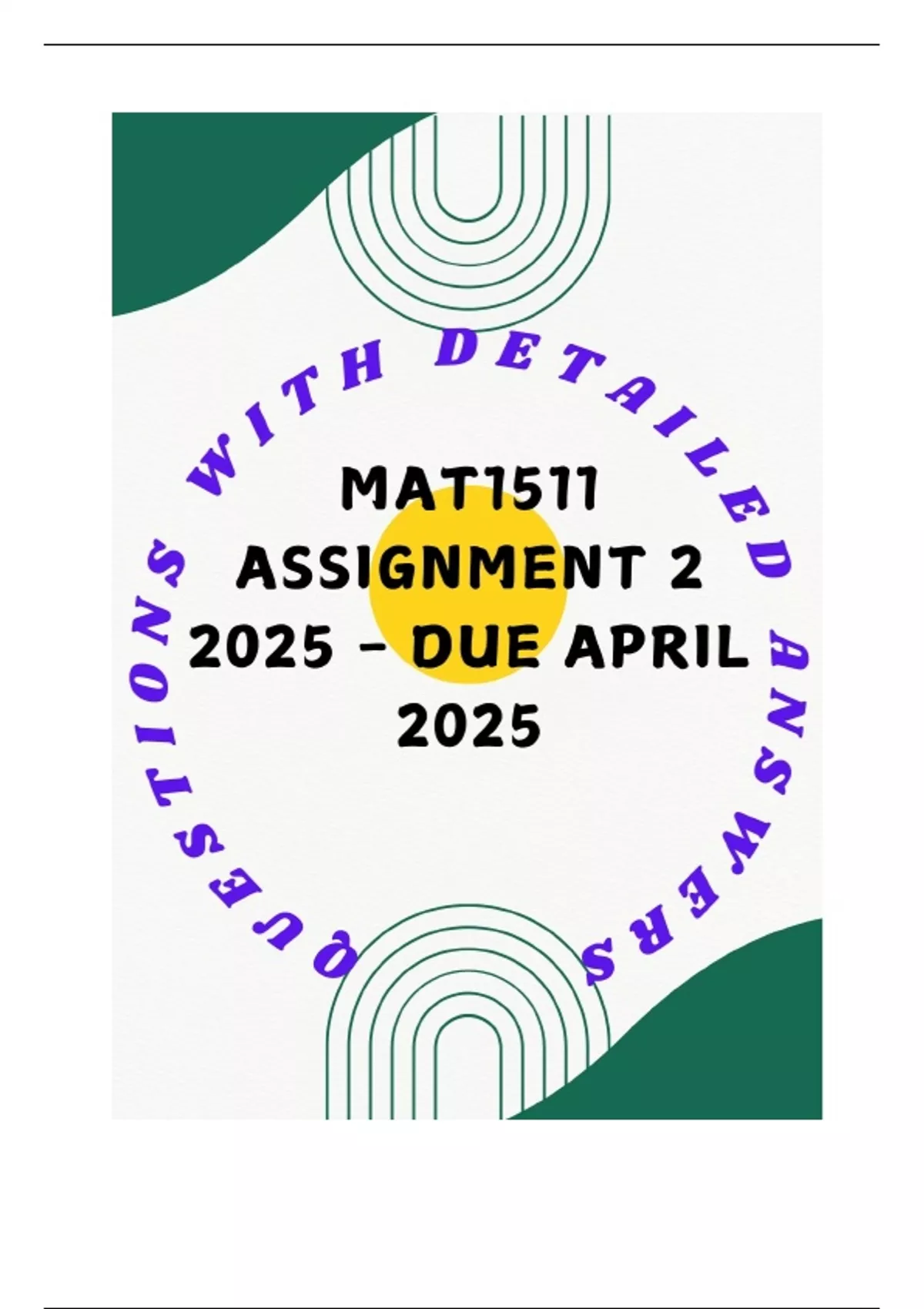MAT1511 Assignment 2 2025 - DUE April 2025 QUESTIONS WITH DETAILED ANSWERS MAT1511 MAT1511 ANSWERS
