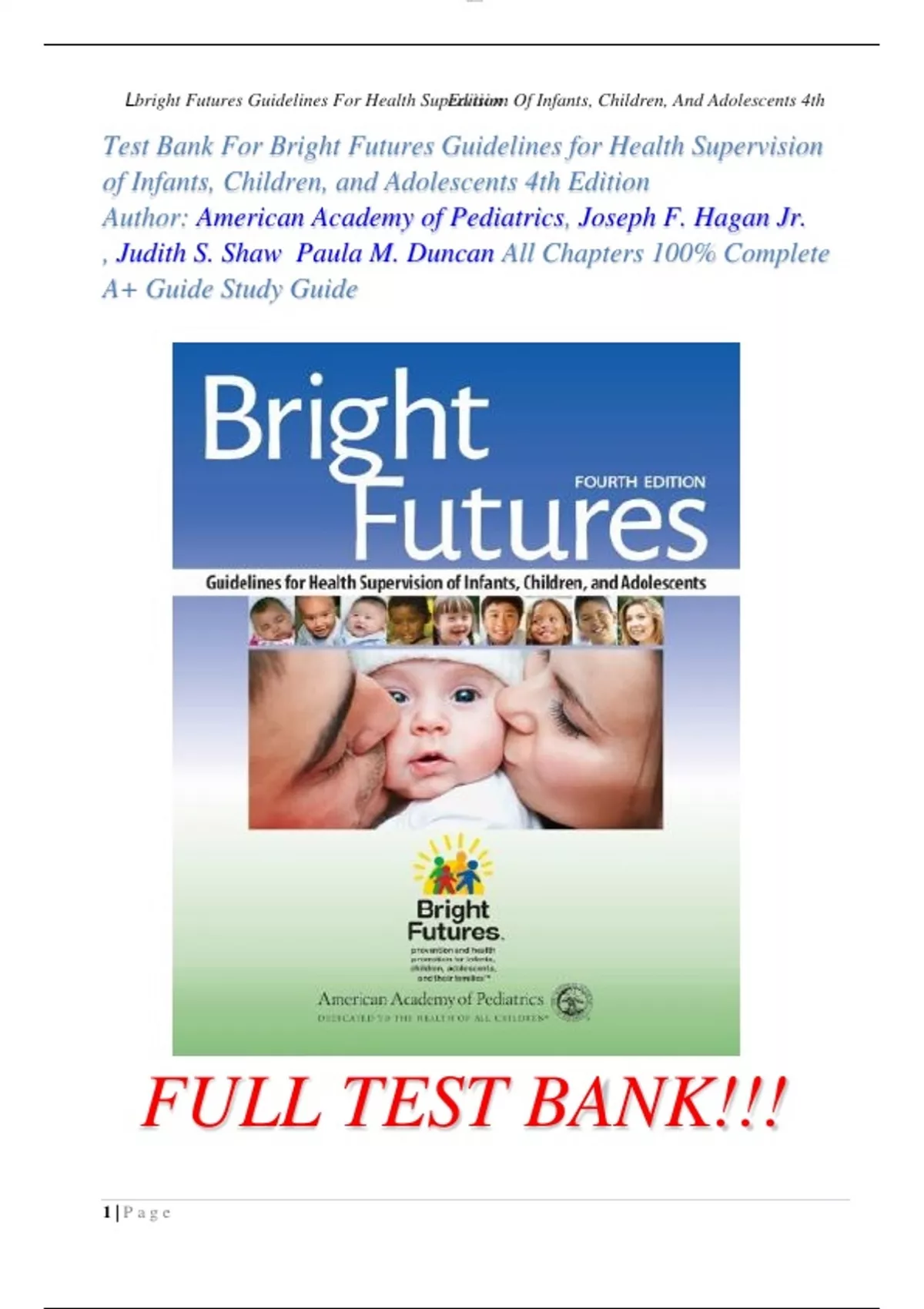 Test Bank For Bright Futures Guidelines for Health Supervision