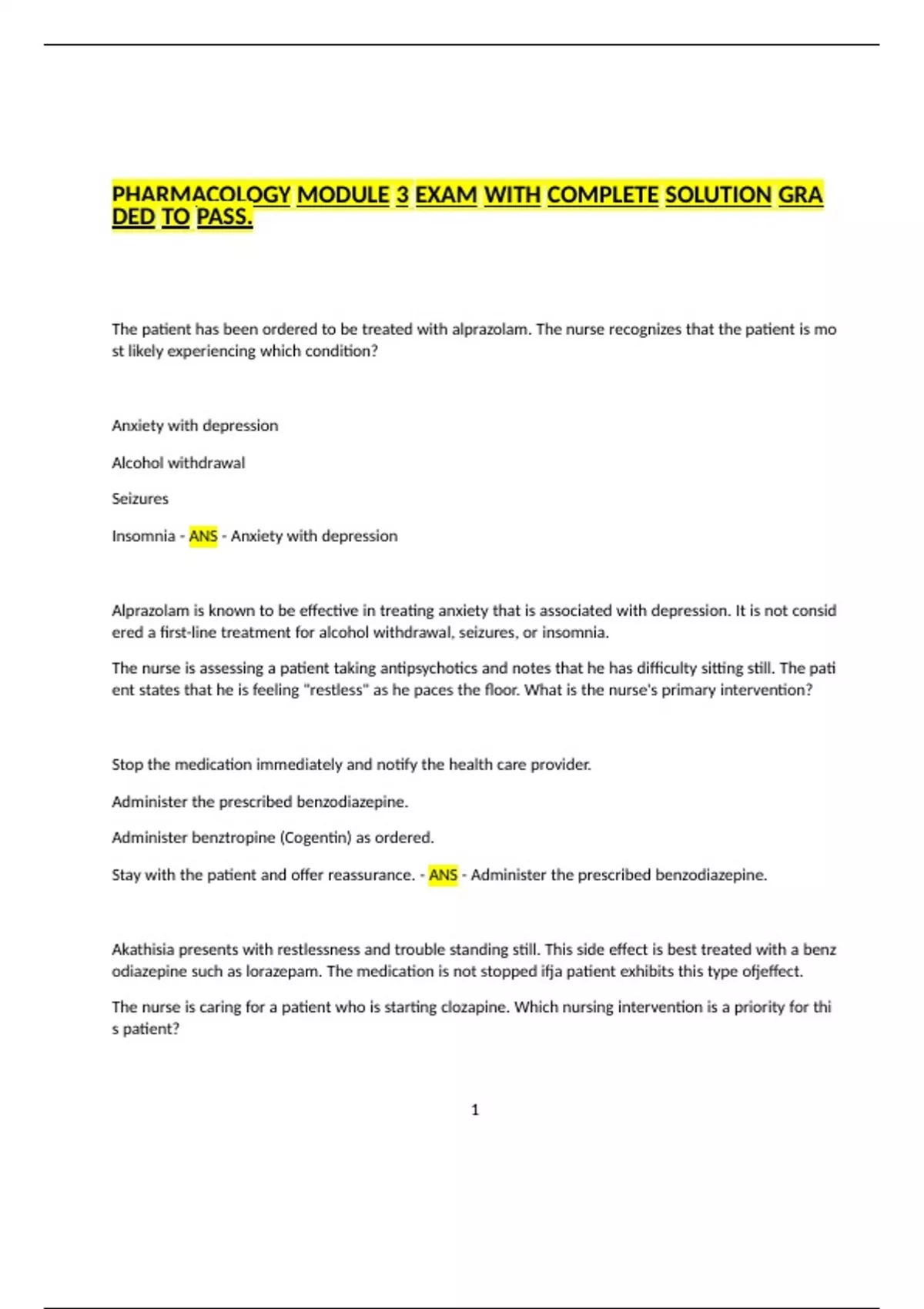 PHARMACOLOGY MODULE 3 EXAM WITH COMPLETE SOLUTION GRADED TO PASS