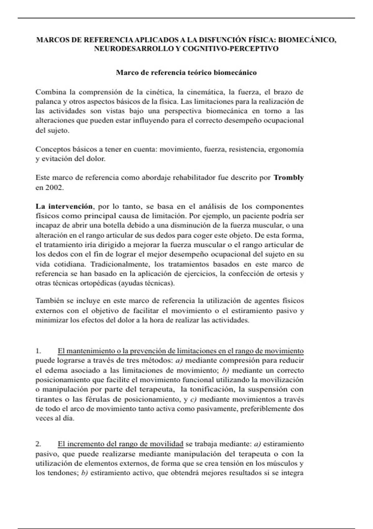 Este marco de referencia como abordaje rehabilitador fue descrito por Trombly