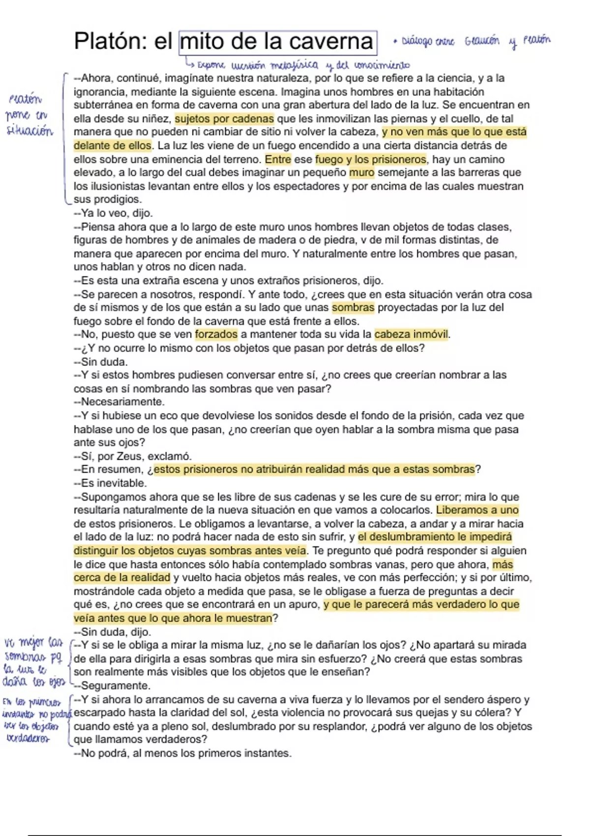 Sumario Platón. El mito de la caverna