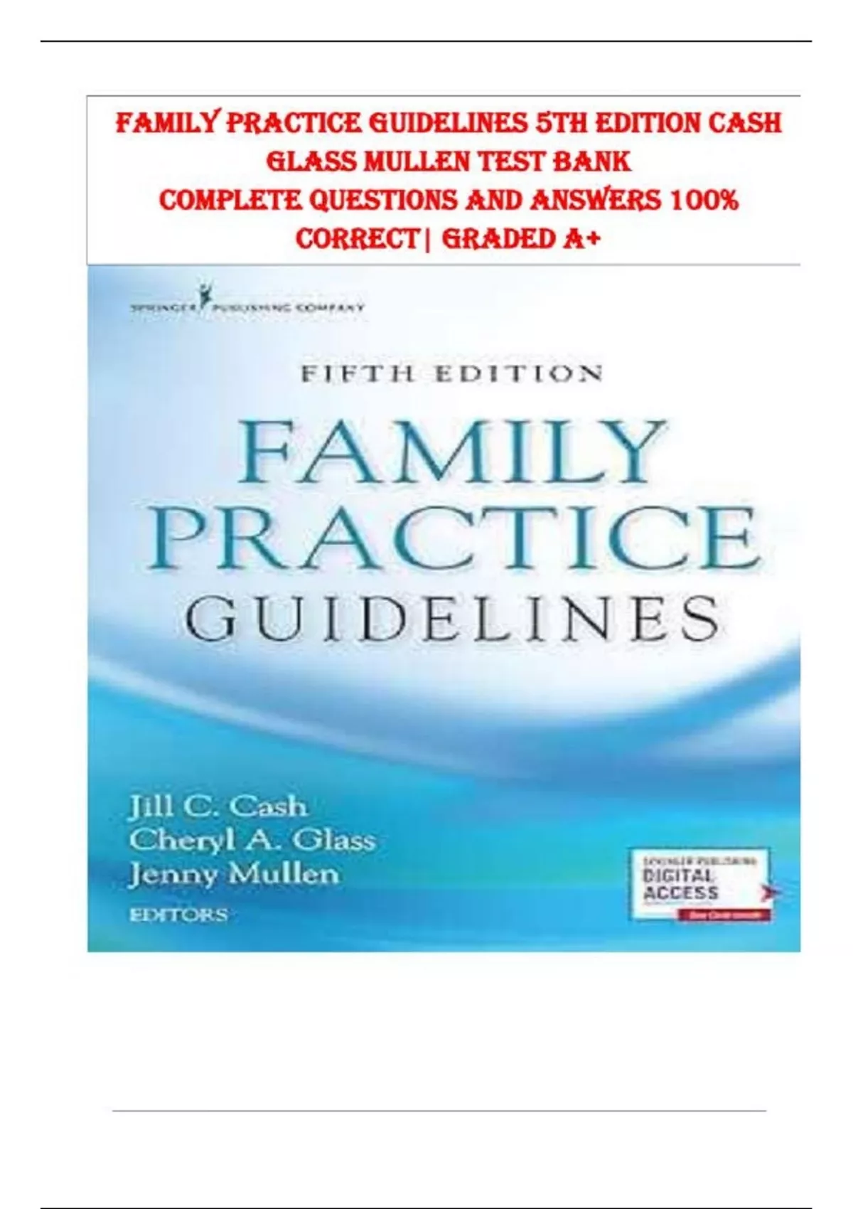 TEST BANK FOR FAMILY PRACTICE GUIDELINES 5TH EDITION CASH GLASS MULLEN ALL CHAPTERS COVERED QUESTIONS AND ANSWERS GRADED A+ NEWEST VERSION.