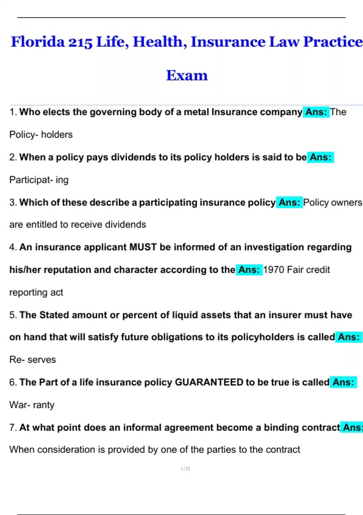 6. The Part of a life insurance policy GUARANTEED to be true is called Ans:
