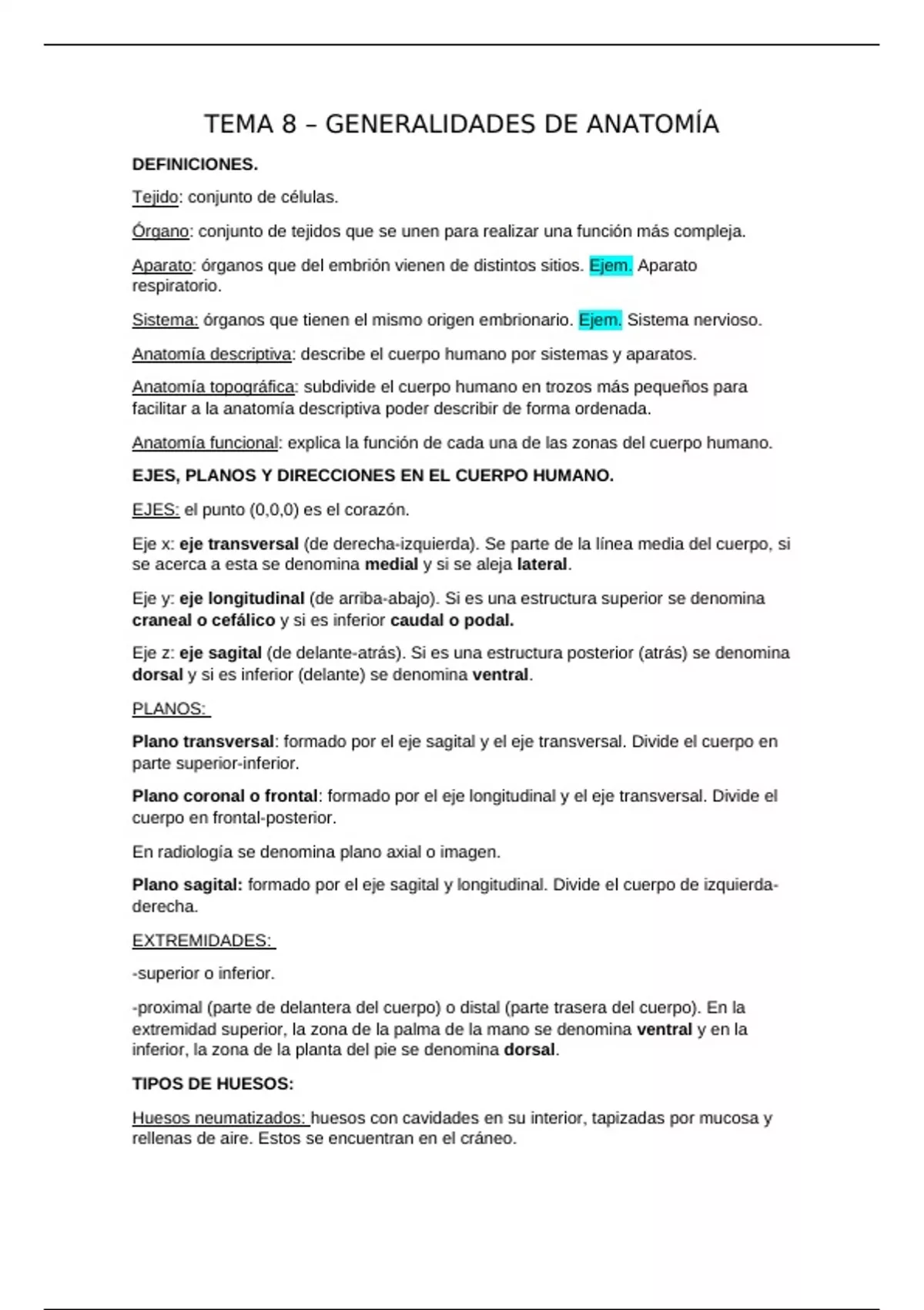 TEMA 8 – GENERALIDADES DE ANATOMÍA