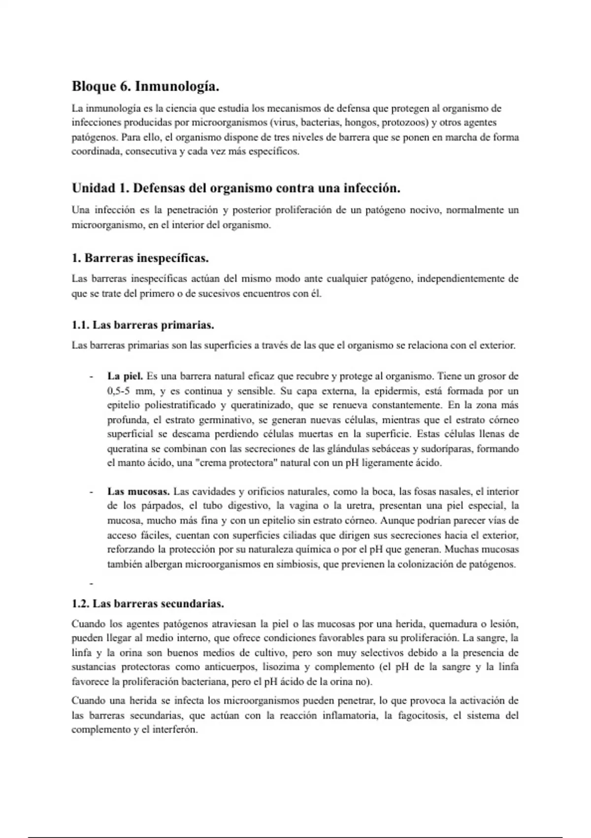 las barreras secundarias, que actúan con la reacción inflamatoria, la fagocitosis, el sistema del