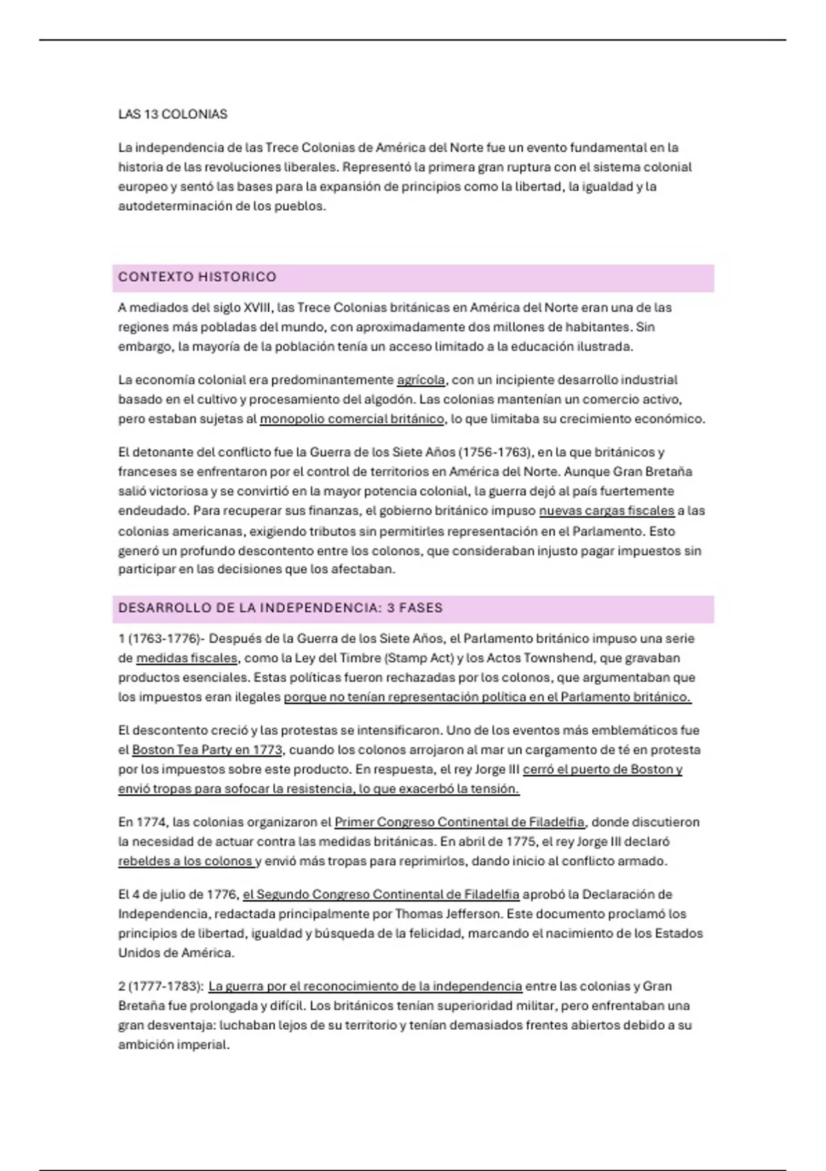 1 (1763-1776)- Después de la Guerra de los Siete Años, el Parlamento británico impuso una serie