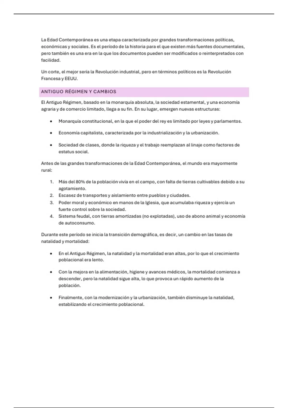 Antes de las grandes transformaciones de la Edad Contemporánea, el mundo era mayormente