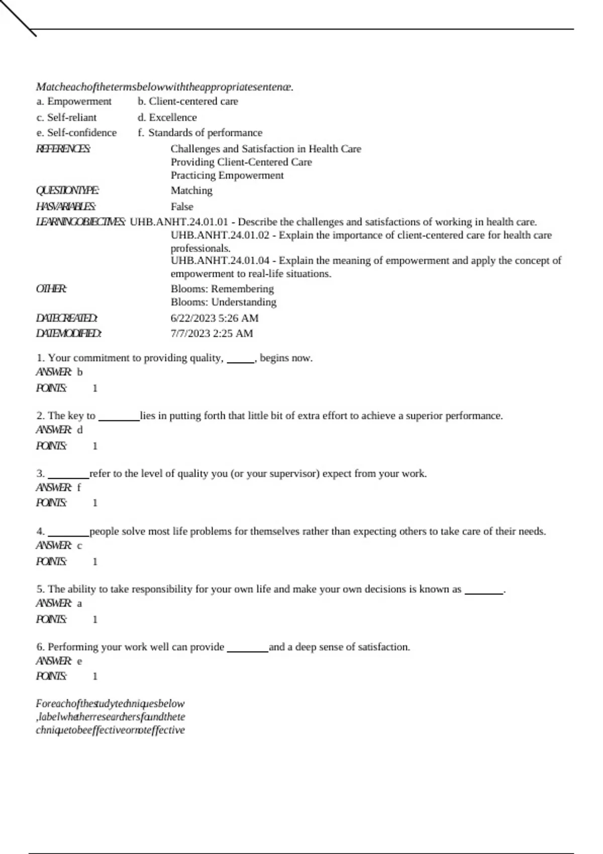 LEARNINGOBJECTIVES: UHB.ANHT.24.01.02 - Explain the importance of client-centered care for health care