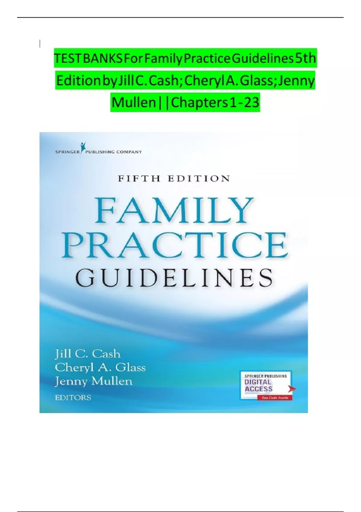 Family Practice Guidelines 5th Edition Cash Glass Mullen Test Bank COMPLETE QUESTIONS AND ANSWERS 100% CORRECT| GRADED A+