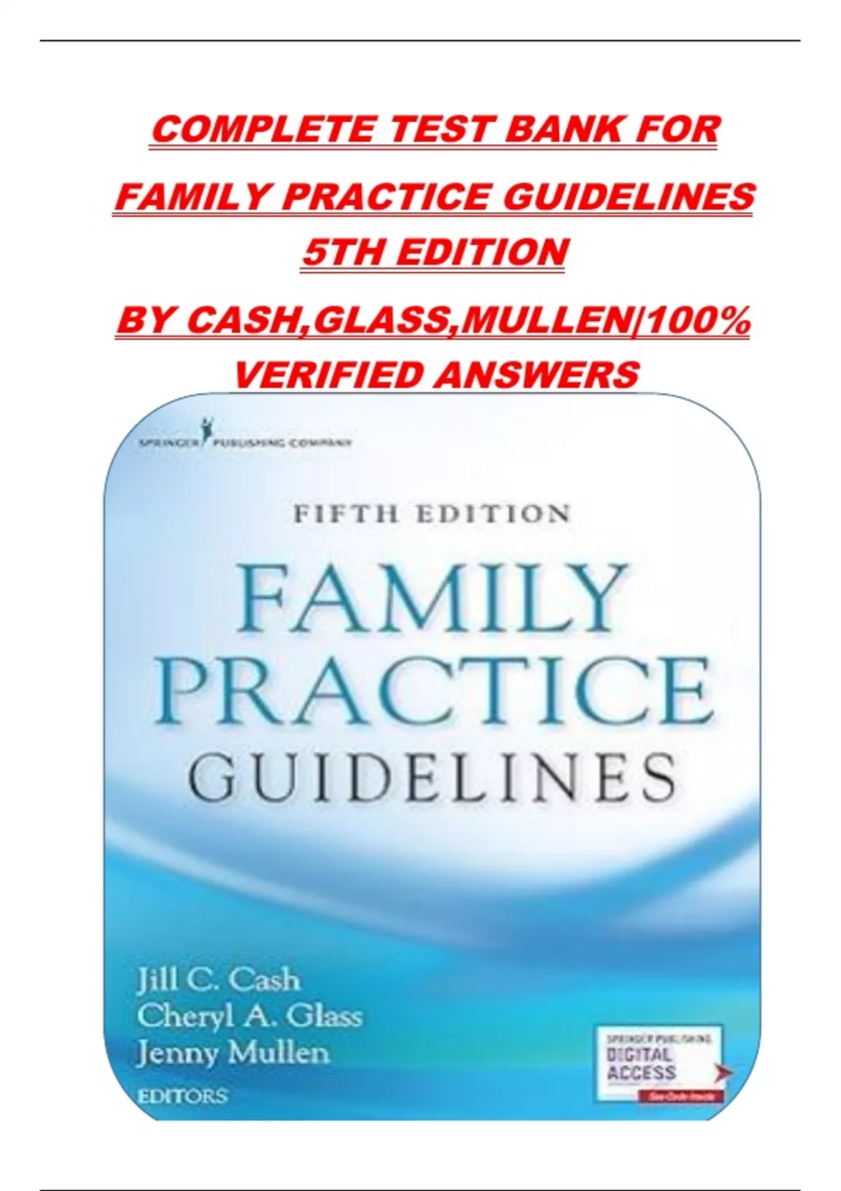 COMPLETE TEST BANK FOR FAMILY PRACTICE GUIDELINES 5TH EDITION BY CASH,GLASS,MULLEN|100% VERIFIED ANSWERS