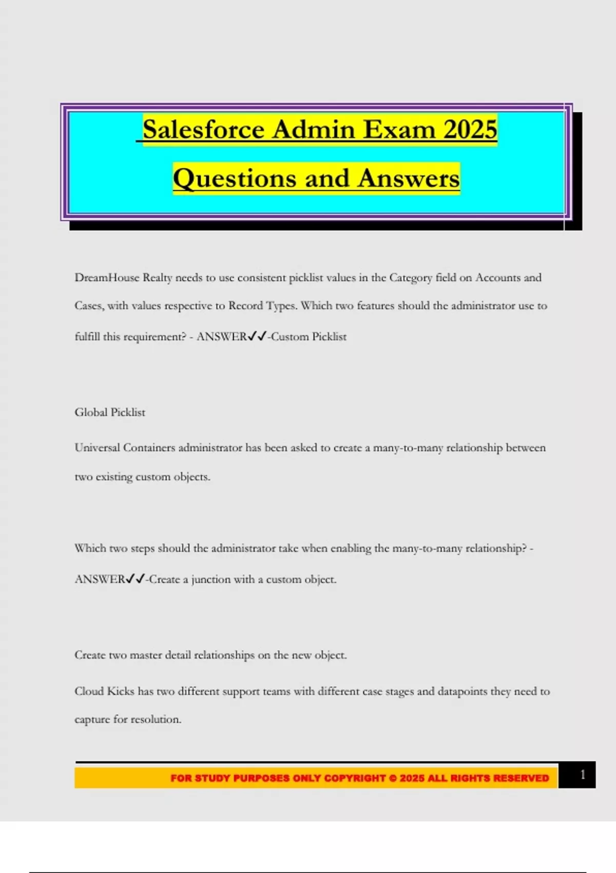 FOR STUDY PURPOSES ONLY COPYRIGHT © 2025 ALL RIGHTS RESERVED 1