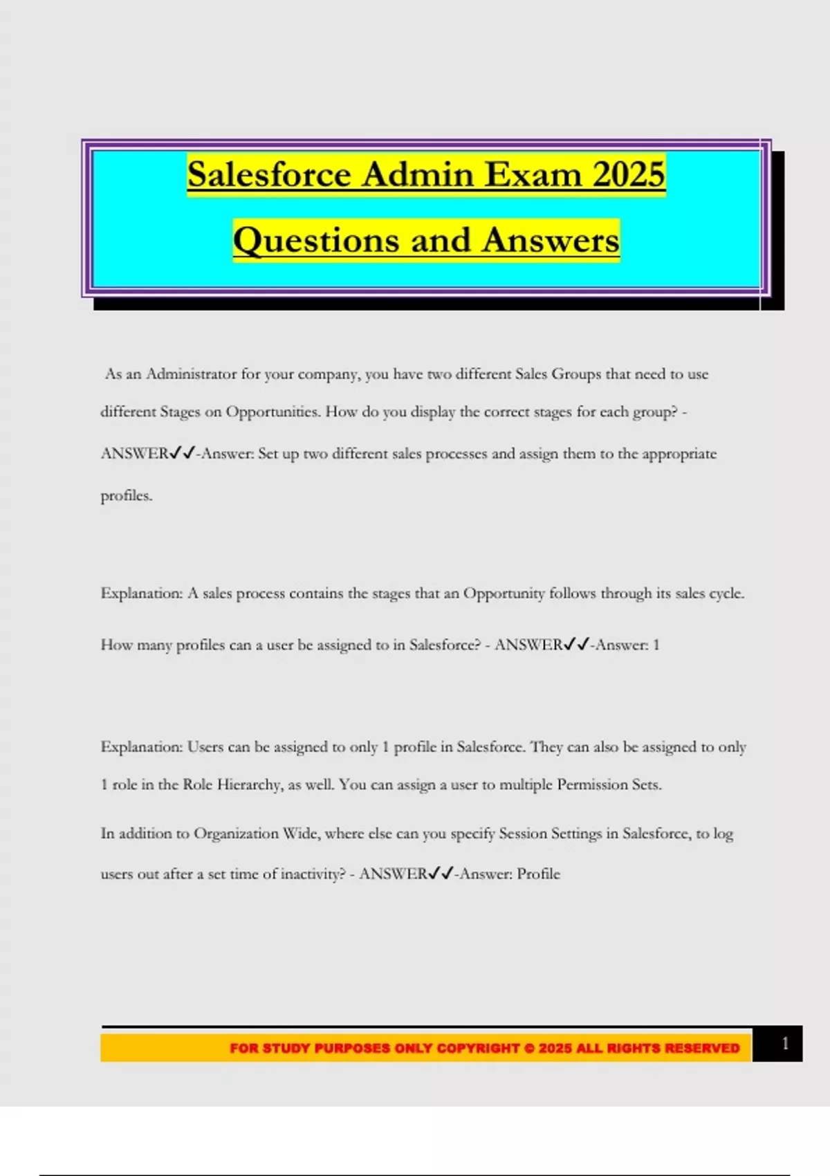 FOR STUDY PURPOSES ONLY COPYRIGHT © 2025 ALL RIGHTS RESERVED 1