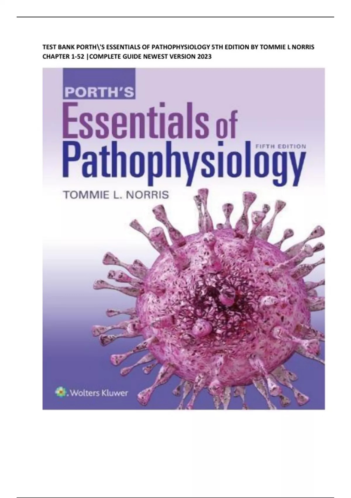 TEST BANK PORTH'S ESSENTIALS OF PATHOPHYSIOLOGY 5TH EDITION BY TOMMIE L NORRIS CHAPTER 1-52 |COMPLETE GUIDE NEWEST VERSION 2023 TEST BANK PORTH'S ESSENTIALS OF PATHOPHYSIOLOGY 5TH EDITION BY TOMMIE L NORRIS CHAPTER 1-52 |COMPLETE GUIDE NEWEST VERSION 2023