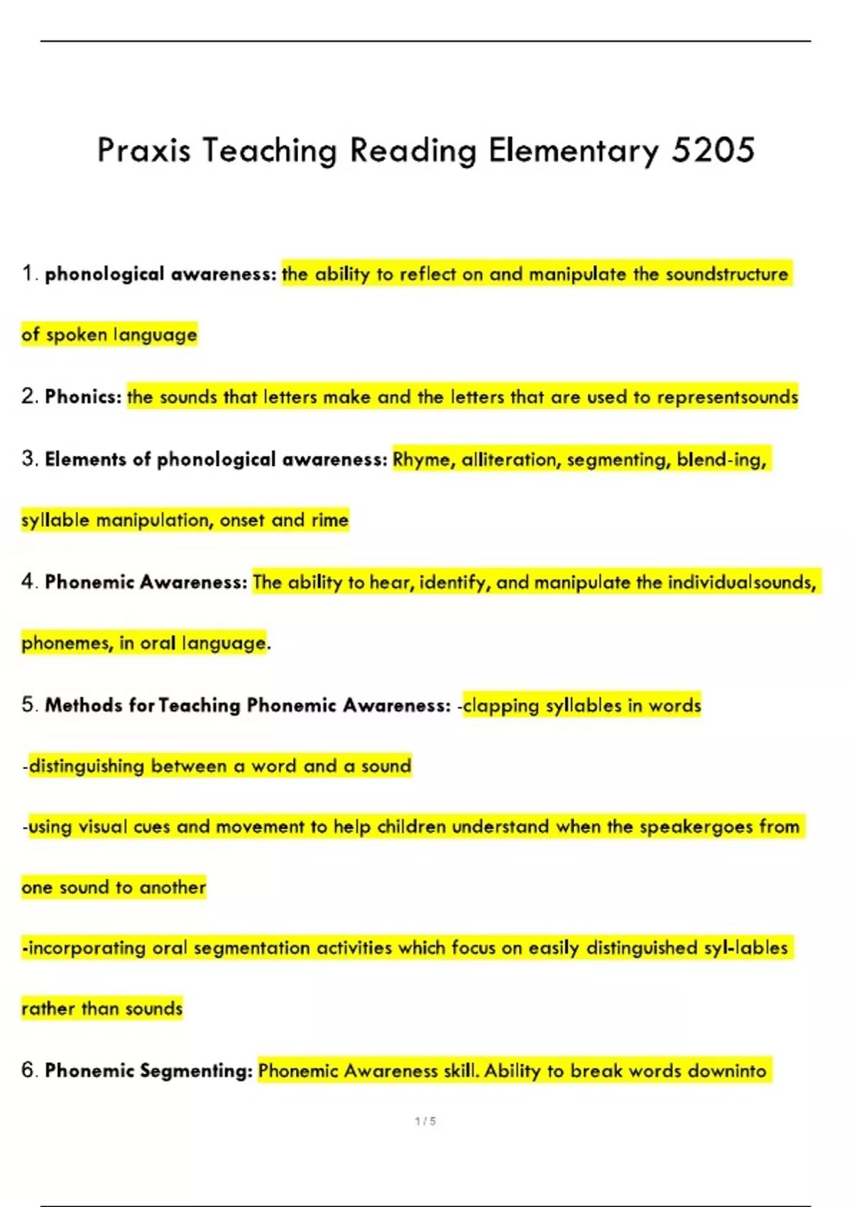 (Praxis) Teaching Reading Elementary 5205