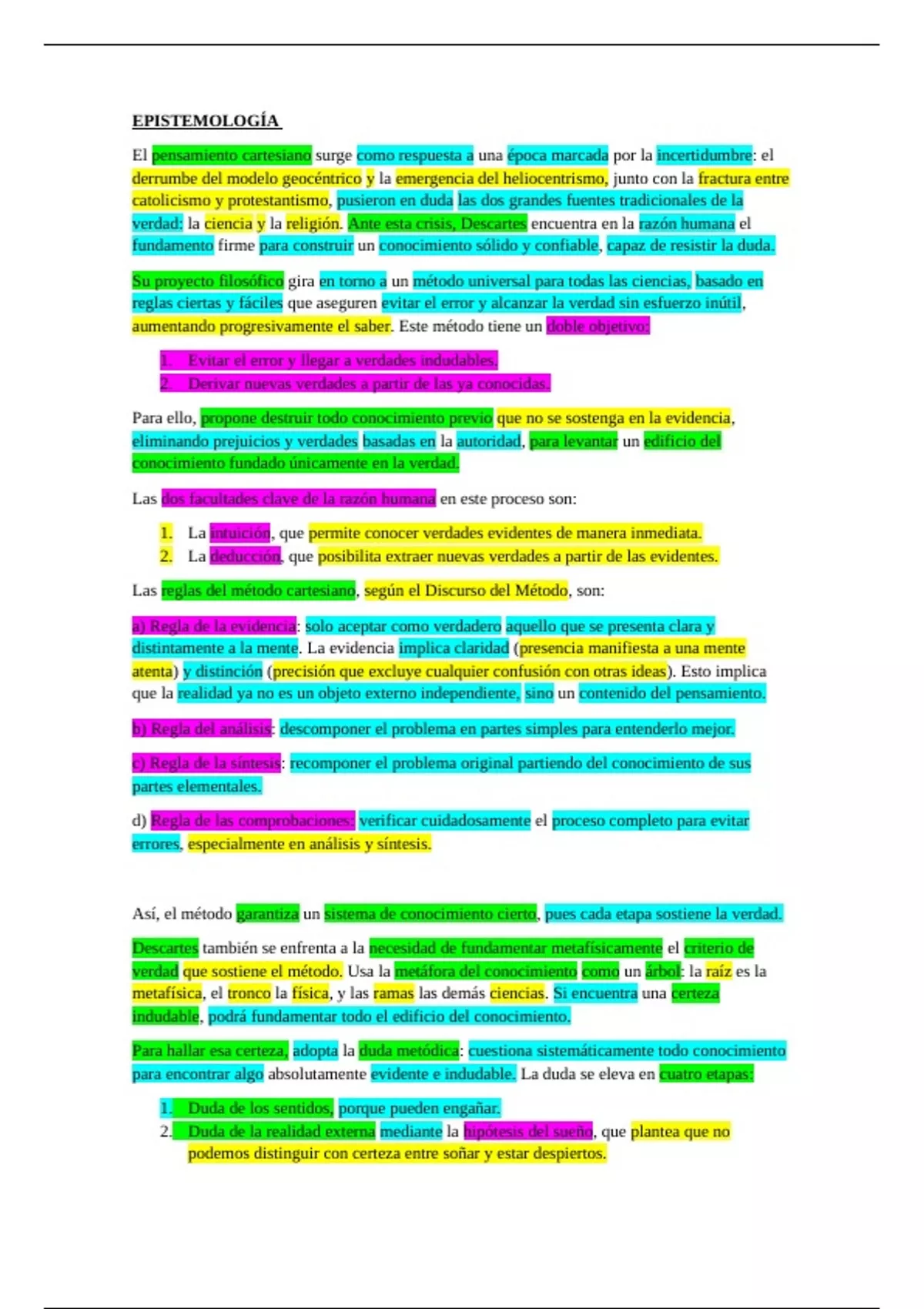 Así, el método garantiza un sistema de conocimiento cierto, pues cada etapa sostiene la verdad.