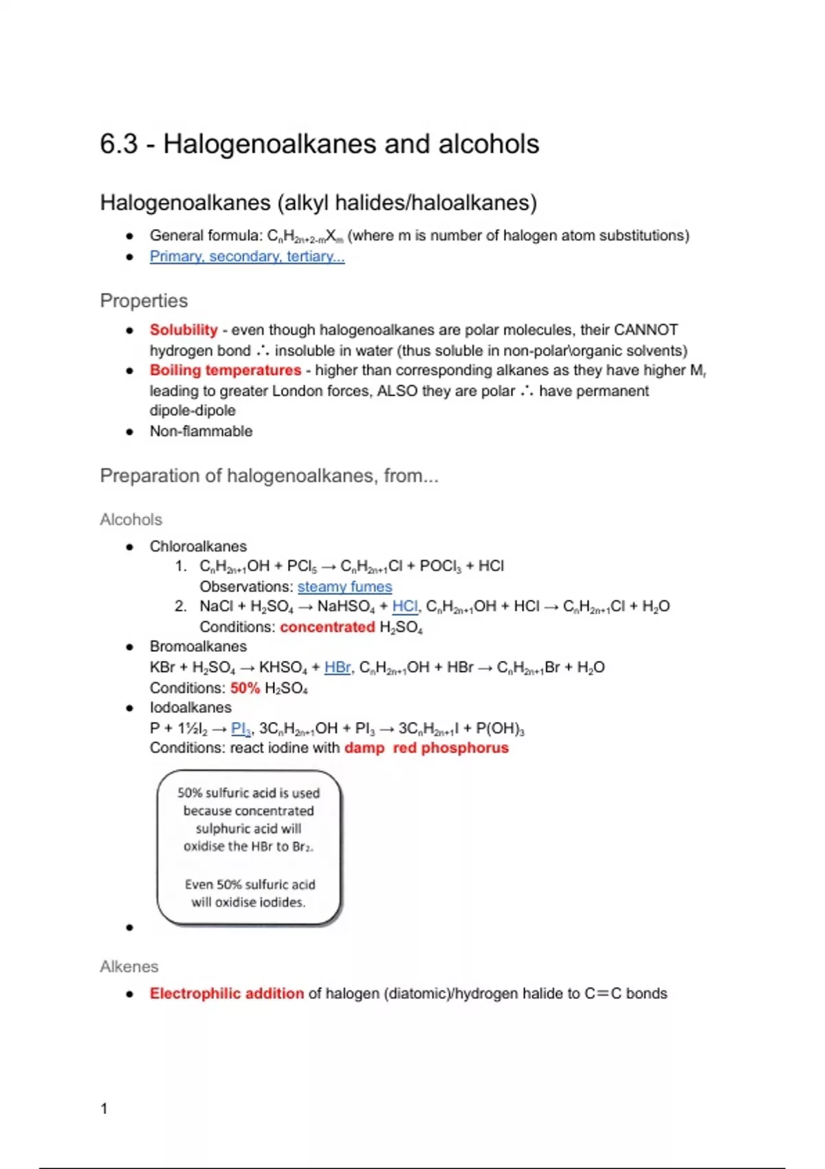 6.3 - Halogenoalkanes and alcohols