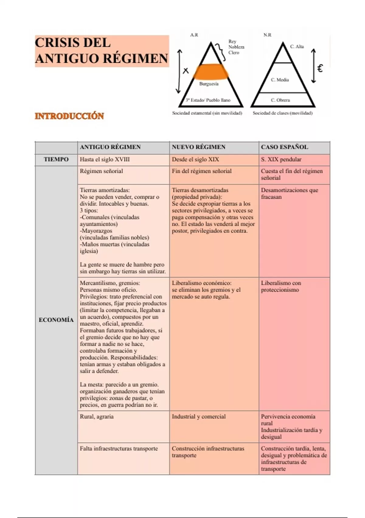 , ANTIGUO RÉGIMEN NUEVO RÉGIMEN CASO ESPAÑOL
