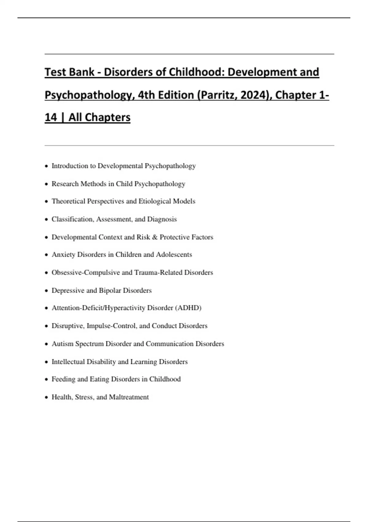 Psychopathology, 4th Edition (Parritz, 2024), Chapter 1-