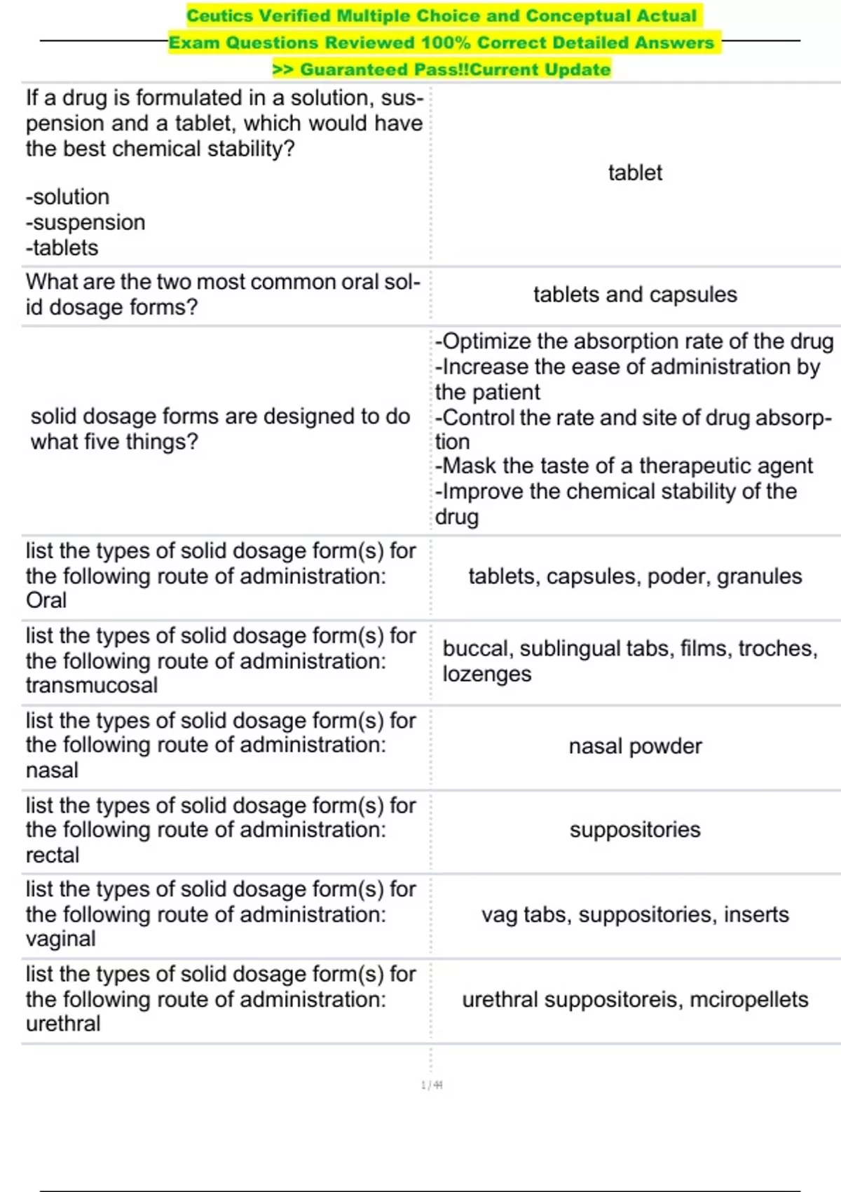 , Ceutics Verified Multiple Choice and Conceptual Actual