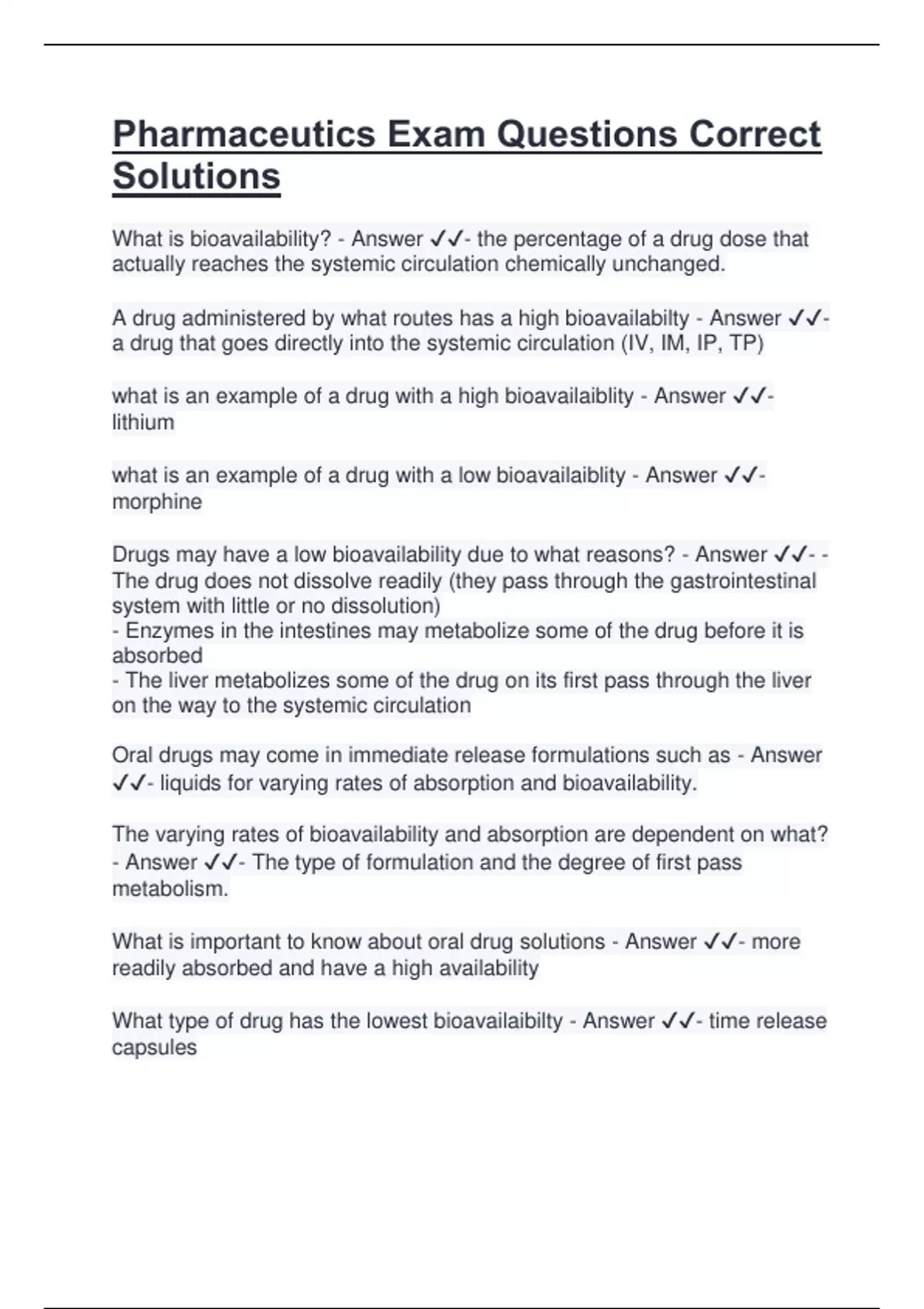 What type of drug has the lowest bioavailaibilty - Answer ✔✔- time release
