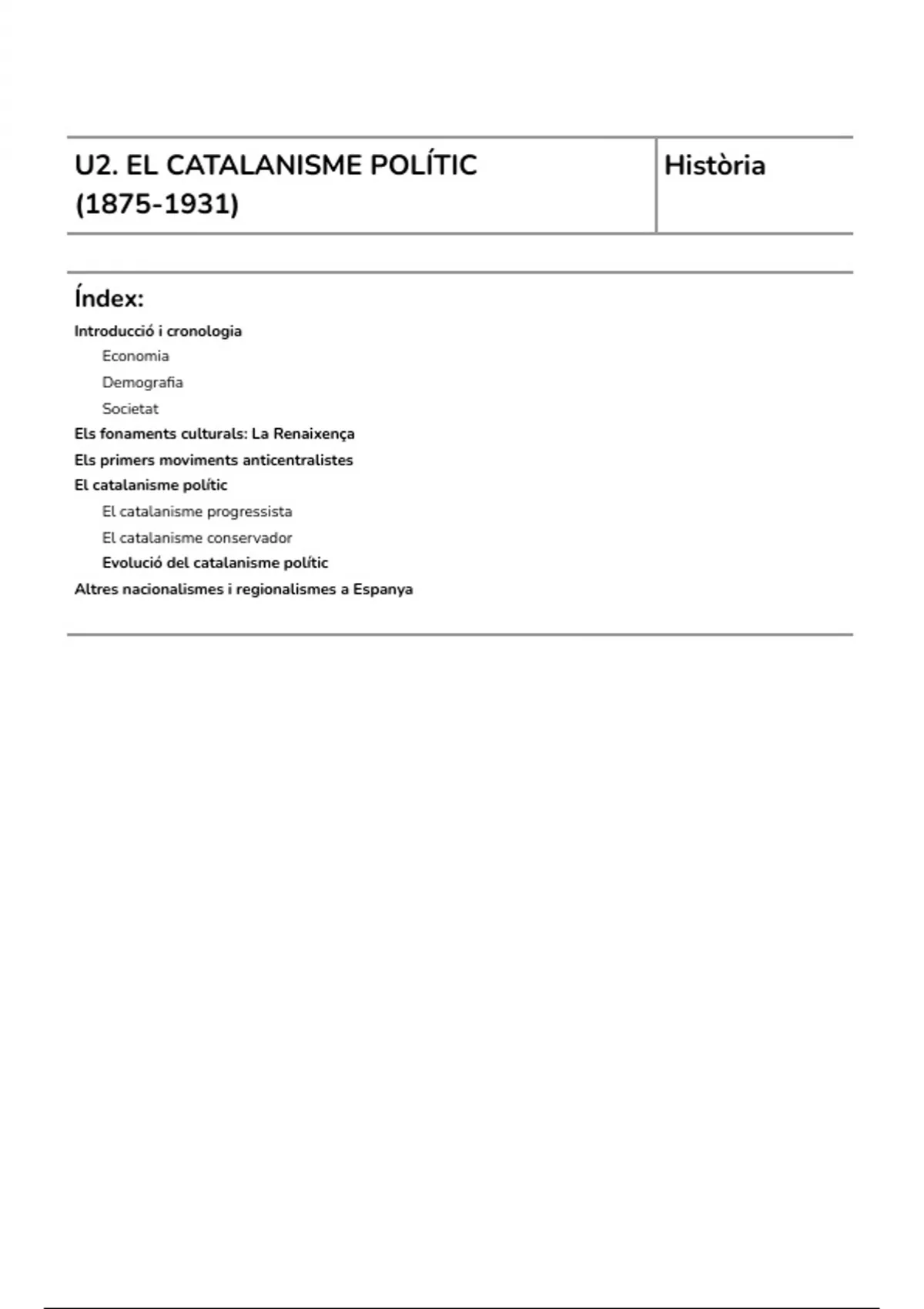 U2. EL CATALANISME POLÍTIC Història