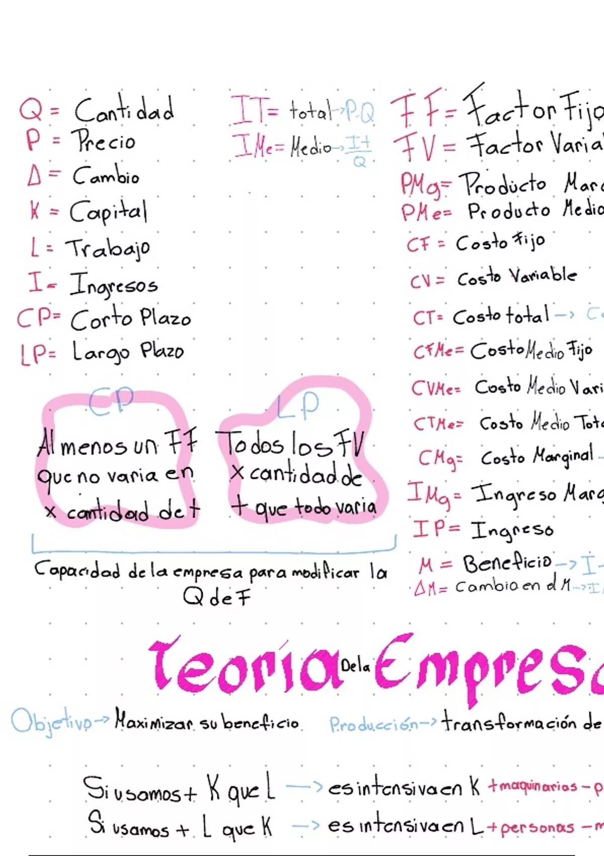 Sumario Resumen de los temas de producción, costos y mercados