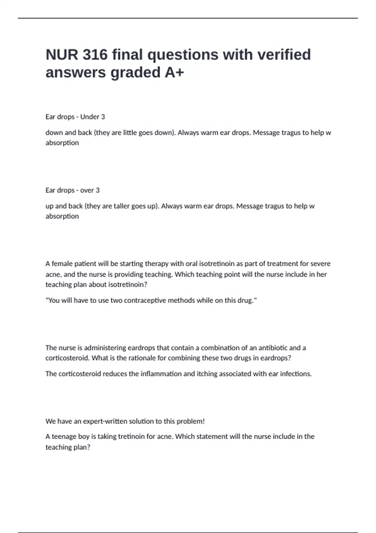 eardrops. Based on this information, the nurse interprets that these eardrops are being used for