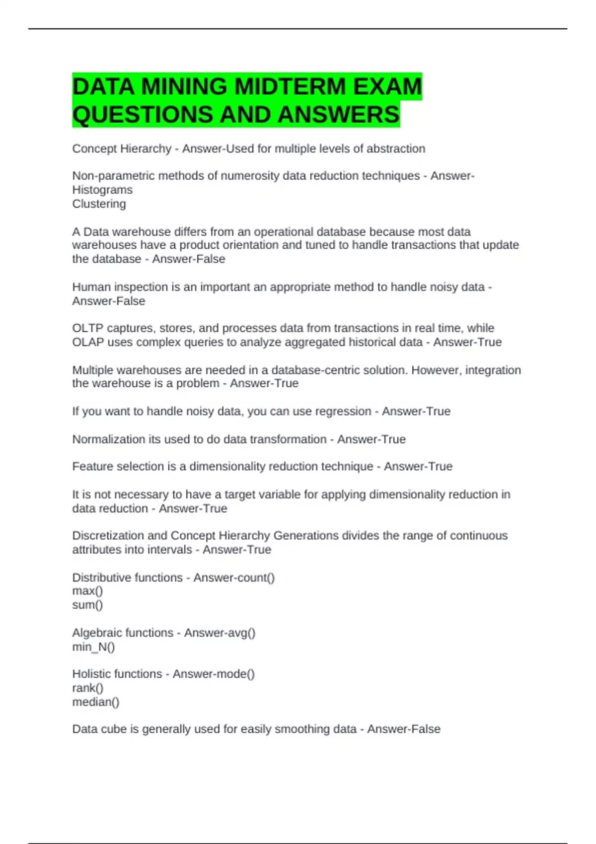 Concept Hierarchy - Answer-Used for multiple levels of abstraction