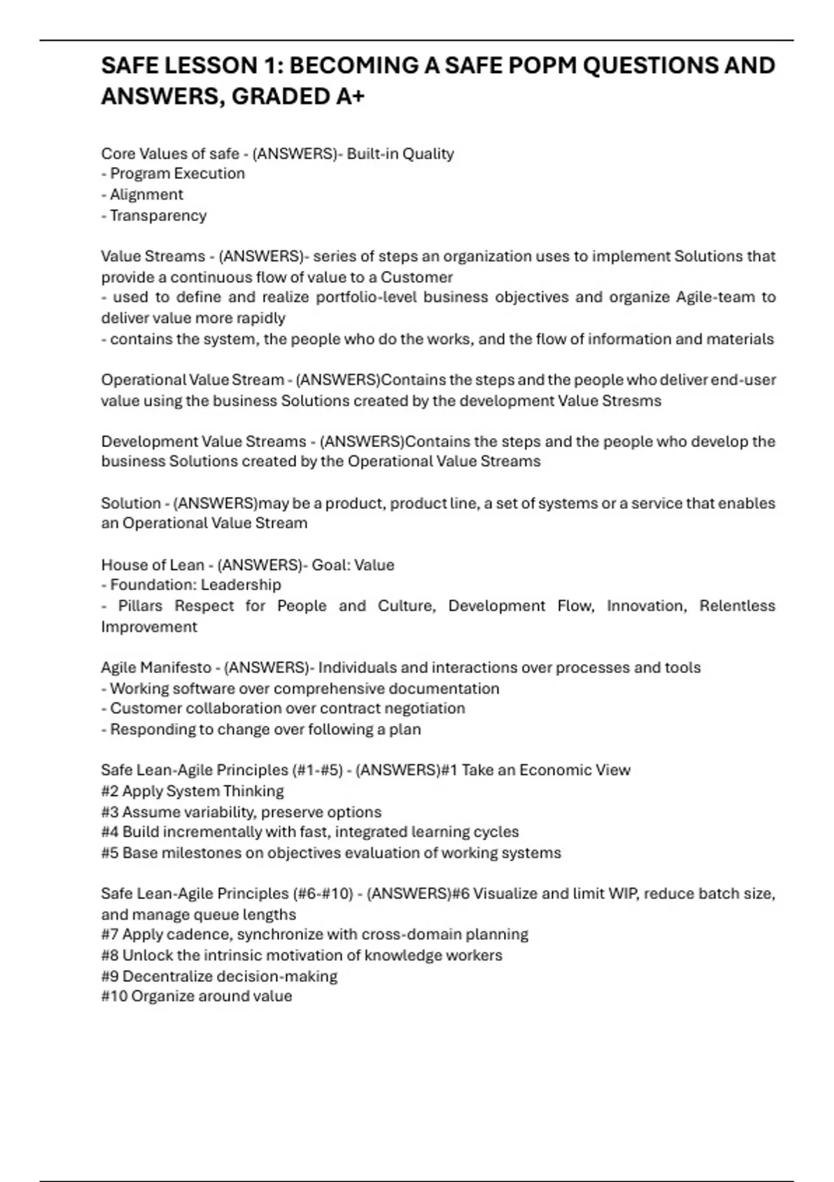 SAFE LESSON 1: BECOMING A SAFE POPM QUESTIONS AND ANSWERS, GRADED A+