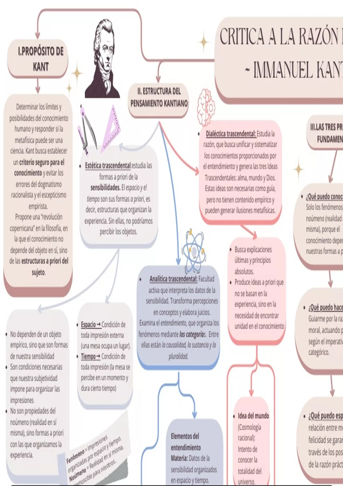 Mapa mental con toda la información necesaria para comprender el tema del filosofo Emmanuel Kant de 2º Bachillerato. Contenidos PAU necesarios para el curso 25-26