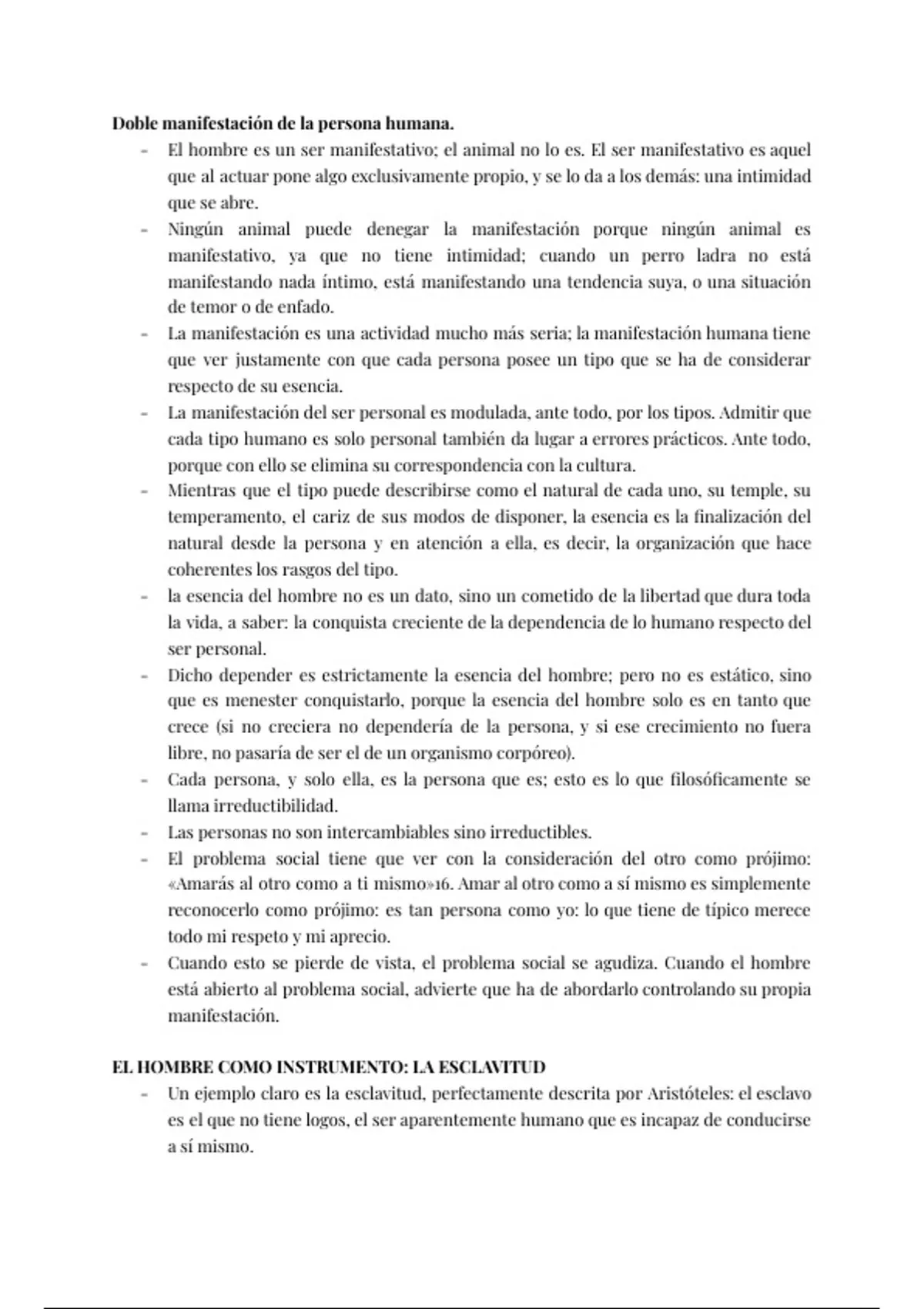 - La consideración de la esencia nos acerca a la irreductibilidad de la persona.