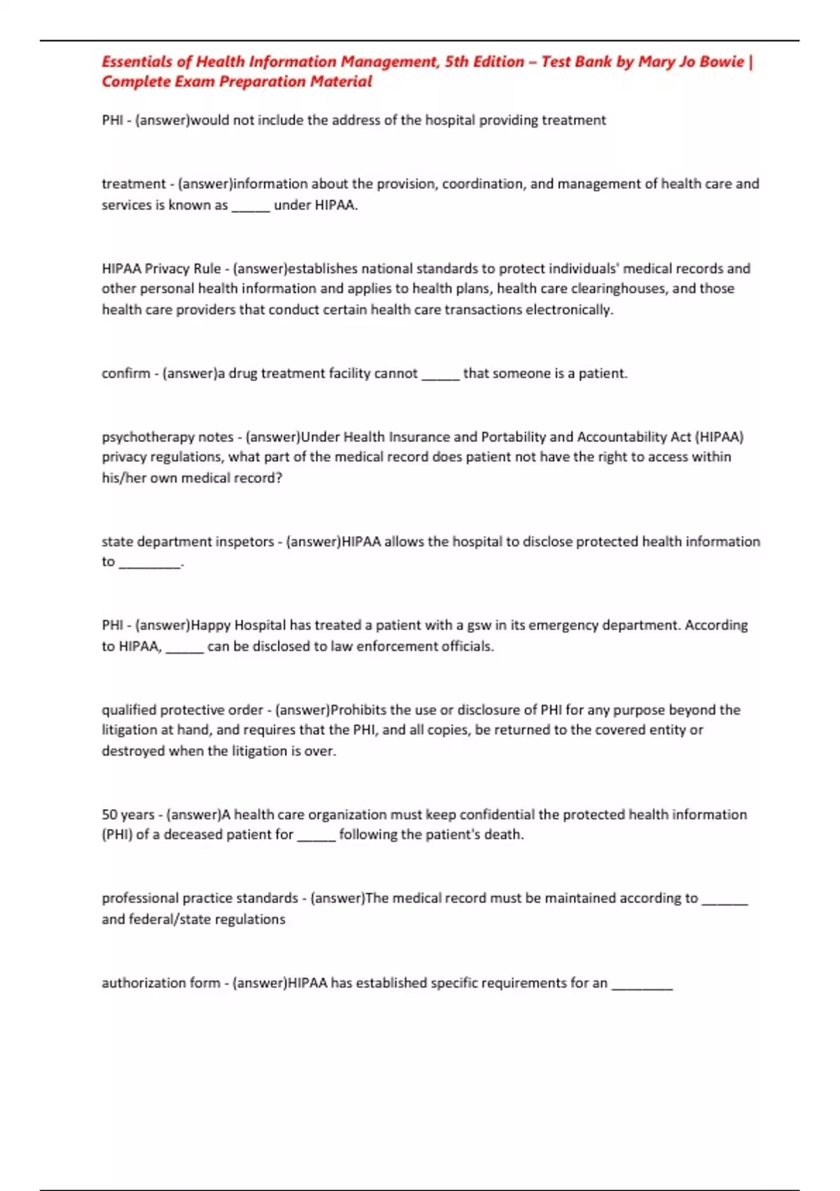 Essentials of Health Information Management, 5th Edition – Test Bank by Mary Jo Bowie | Complete Exam Preparation Material