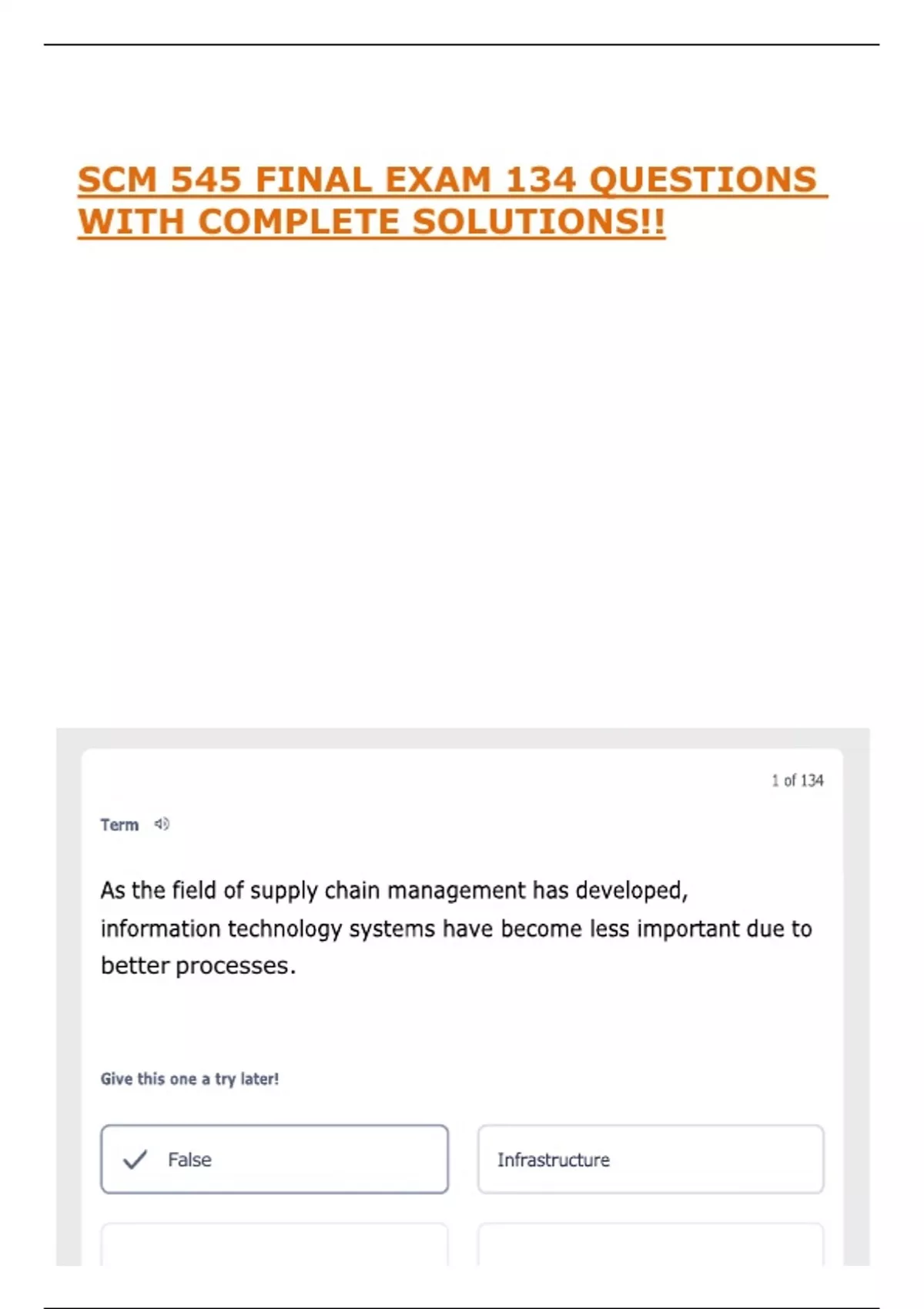 SCM 545 FINAL EXAM 134 QUESTIONS