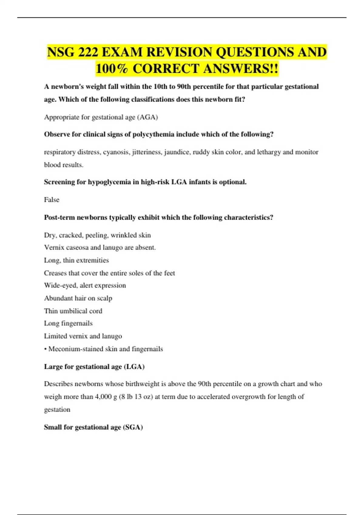 NSG 222 EXAM REVIEW QUESTIONS AND 100% CORRECT ANSWERS