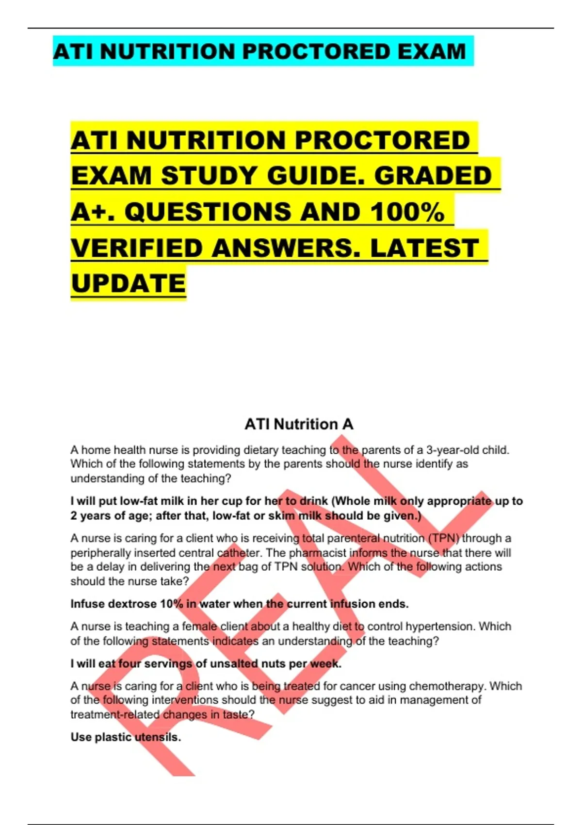 ,ATI NUTRITION PROCTORED EXAM