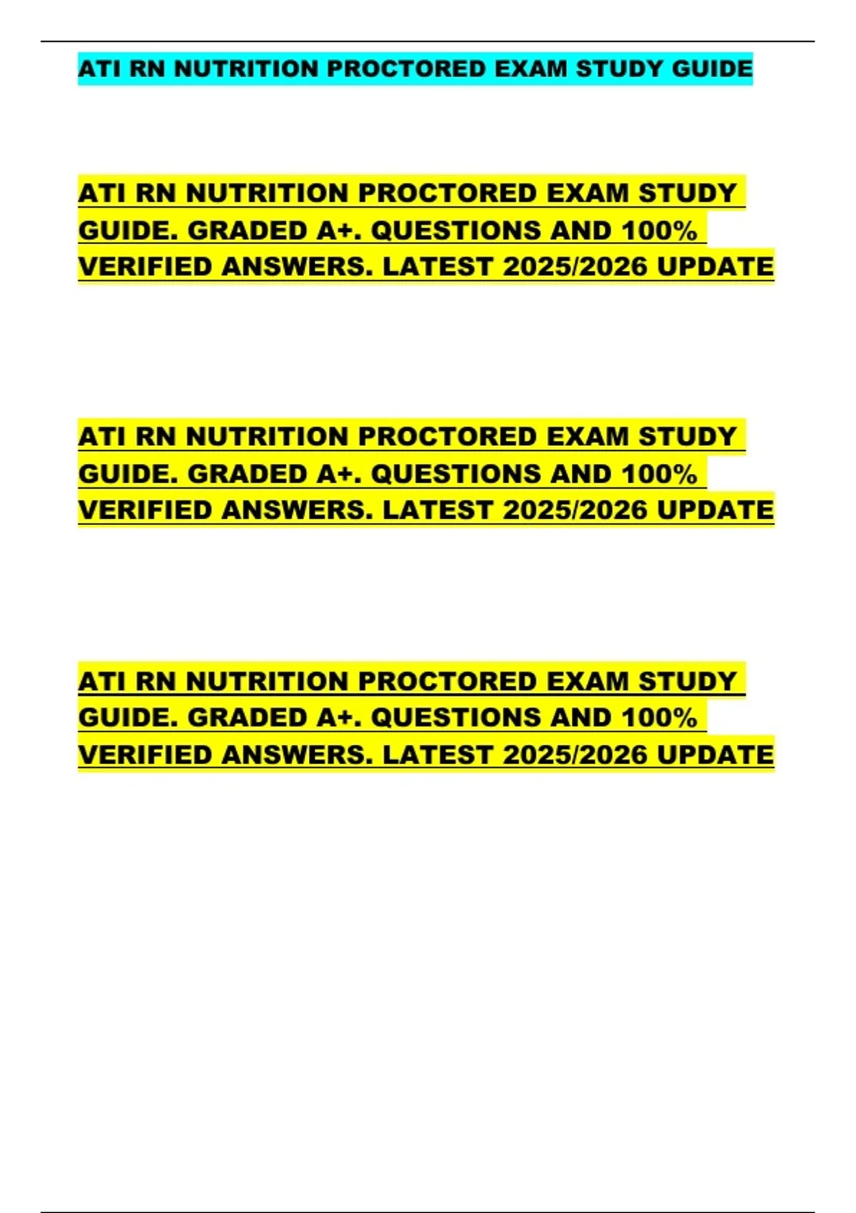 ,ATI RN NUTRITION PROCTORED EXAM STUDY GUIDE