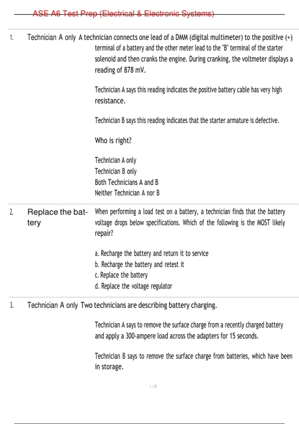 3. Technician A only Two technicians are describing battery charging.