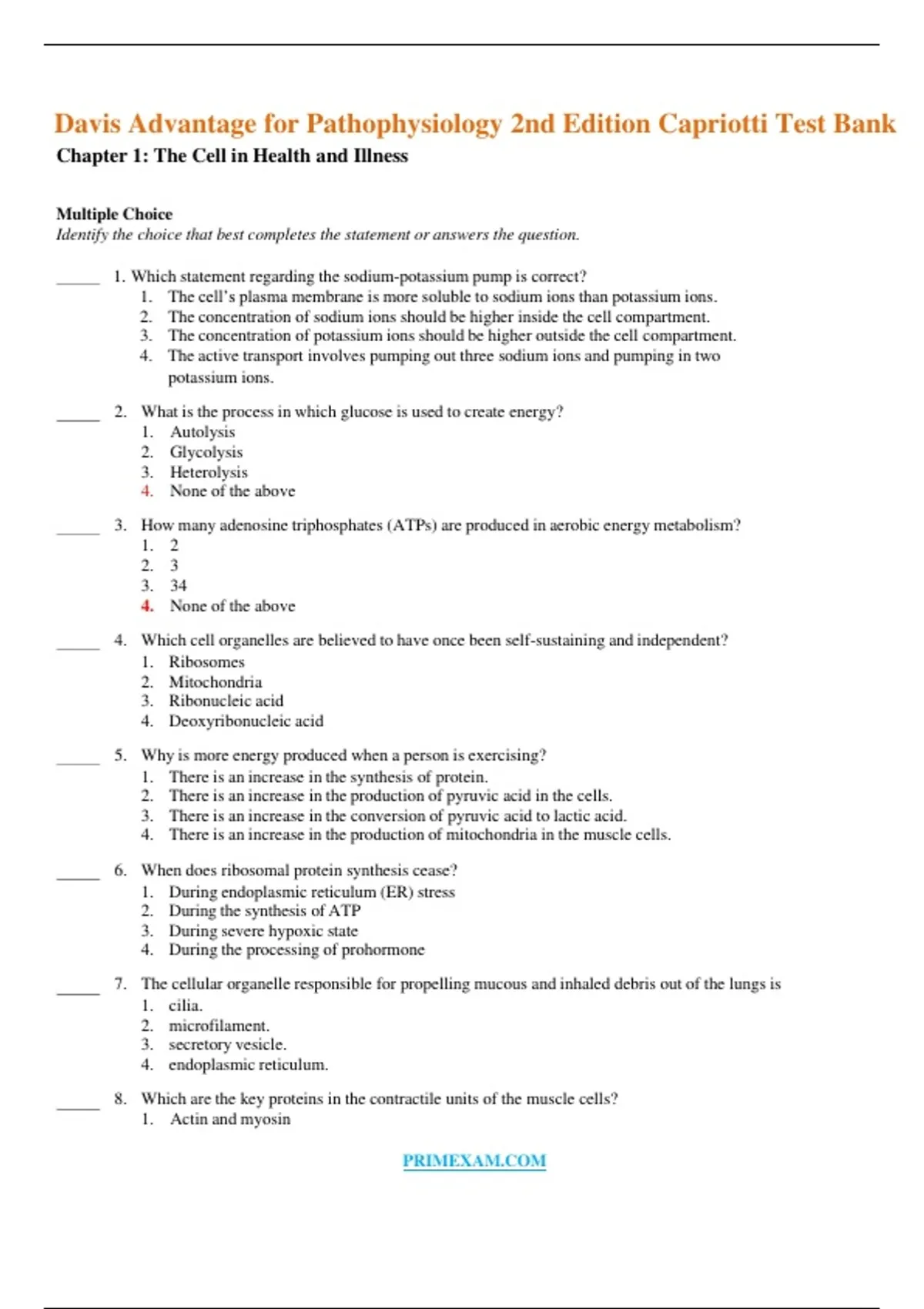 Davis Advantage for Pathophysiology 2nd Edition Capriotti Test Bank