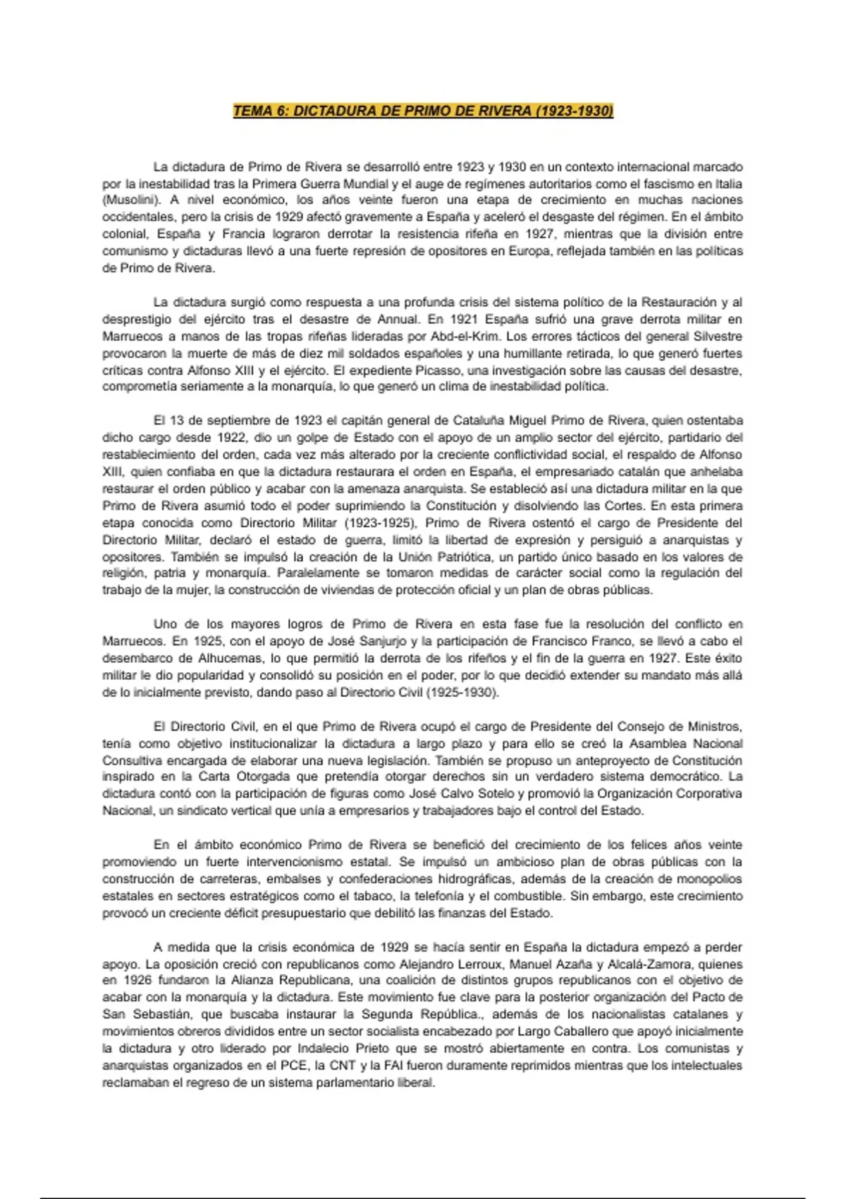 TEMA 6: DICTADURA DE PRIMO DE RIVERA (1923-1930)