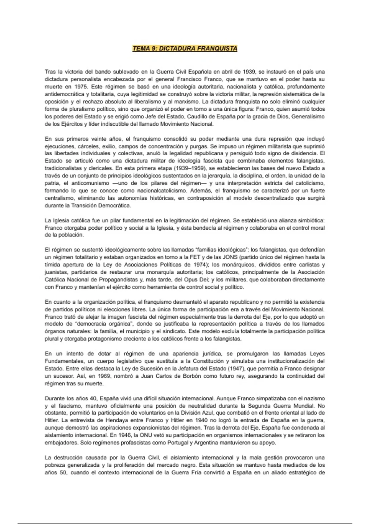 TEMA 9: DICTADURA FRANQUISTA