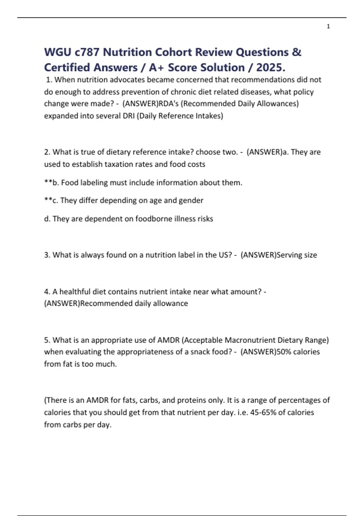 WGU c787 Nutrition Cohort Review Questions & Certified Answers / A+ Score Solution / 2025.