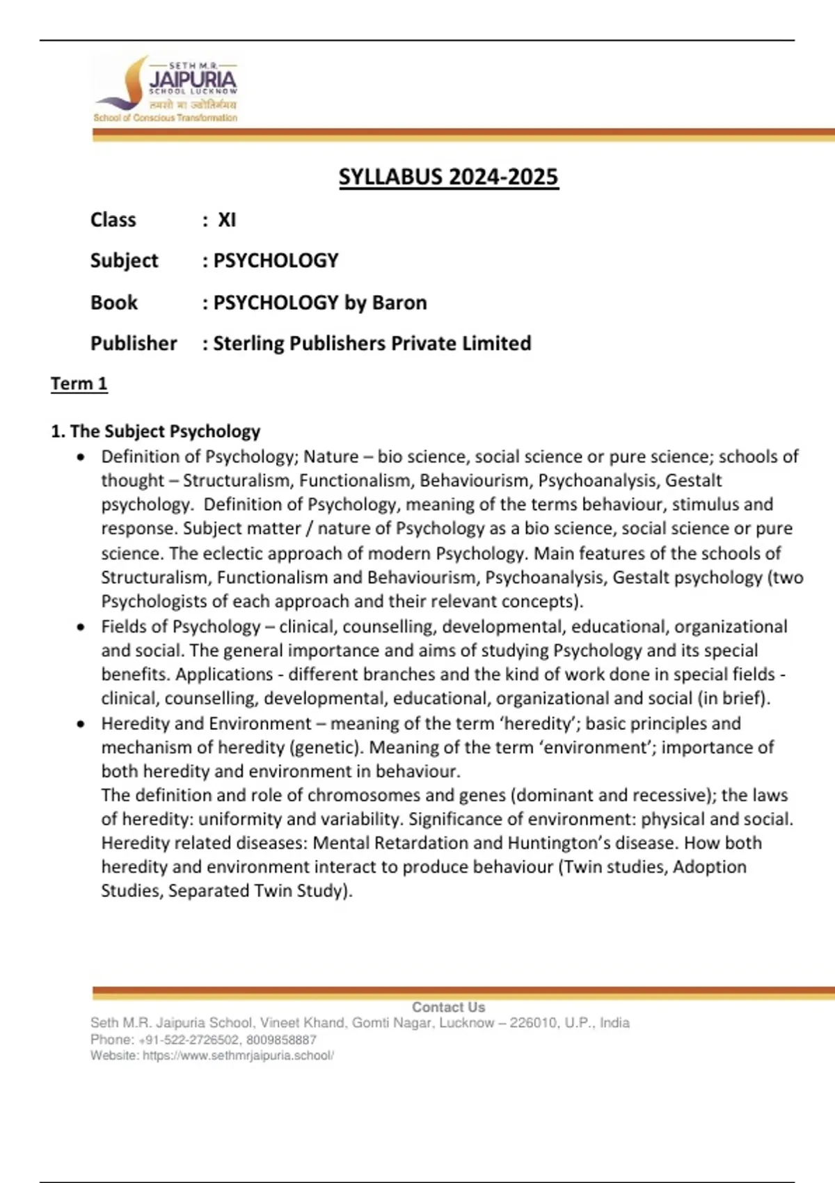 Seth M.R. Jaipuria School, Vineet Khand, Gomti Nagar, Lucknow – 226010, U.P., India